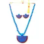 Karru Krafft Women's Handcrafted Terracotta Necklace Set Traditional Blue Hand Painted Jewellery Set