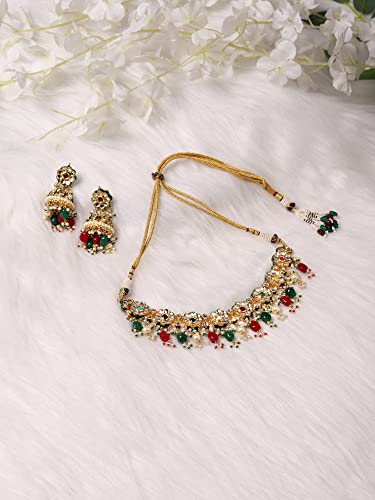 Ruby Raang Women's Mixed Metal Artificial Kundan Jewellery - Traditional Jewellery Set for Women (Gold)