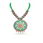 The product in display is made from terracotta material and is finished in an attractive green color. Furthermore this product features a strand shape and a design that renders it with the versatility to be worn as a festive occasion wear.