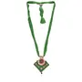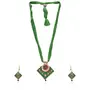 The product in display is made from terracotta material and is finished in an attractive green color. Furthermore this product features a strand shape and a design that renders it with the versatility to be worn as a festive occasion wear.