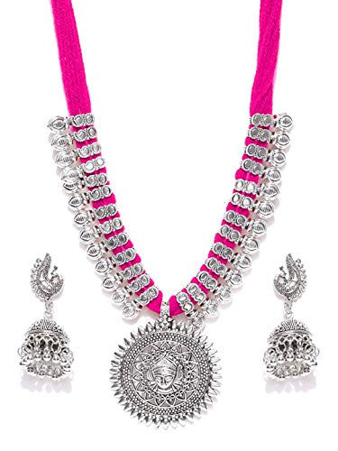 From the house of YouBella these Traditional necklaces add a hint of raw ethnic beauty to any look. Representing a classic fusion of exquisite craftsmanship and feminine elegance this set will definitely be a treasured inclusion in every woman's jewelery collection. The gold finish further ensures a long-lasting shine.!!