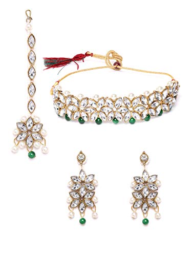From the house of YouBella these Traditional necklaces add a hint of raw ethnic beauty to any look. Representing a classic fusion of exquisite craftsmanship and feminine elegance this set will definitely be a treasured inclusion in every woman's jewelery collection. The gold finish further ensures a long-lasting shine.!!