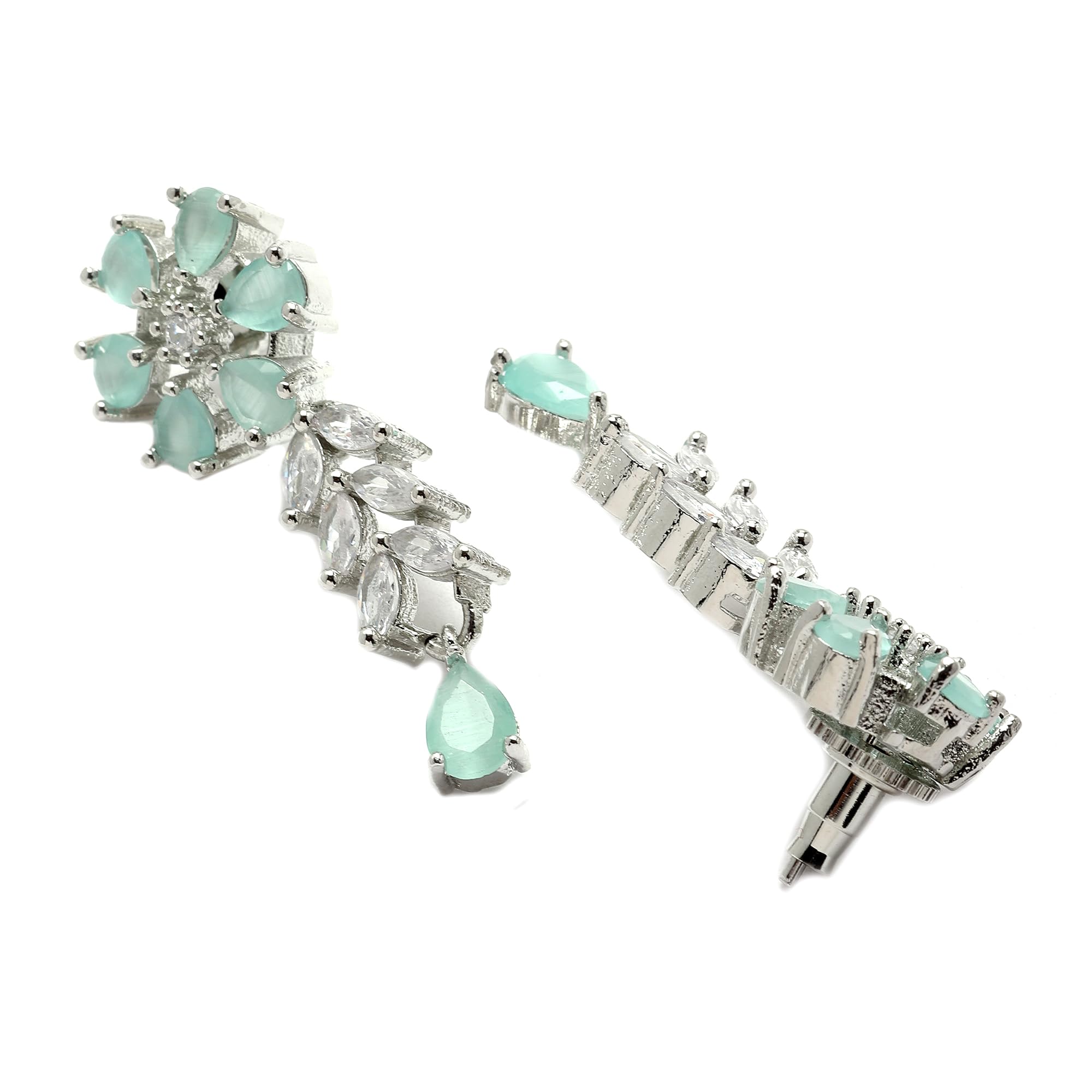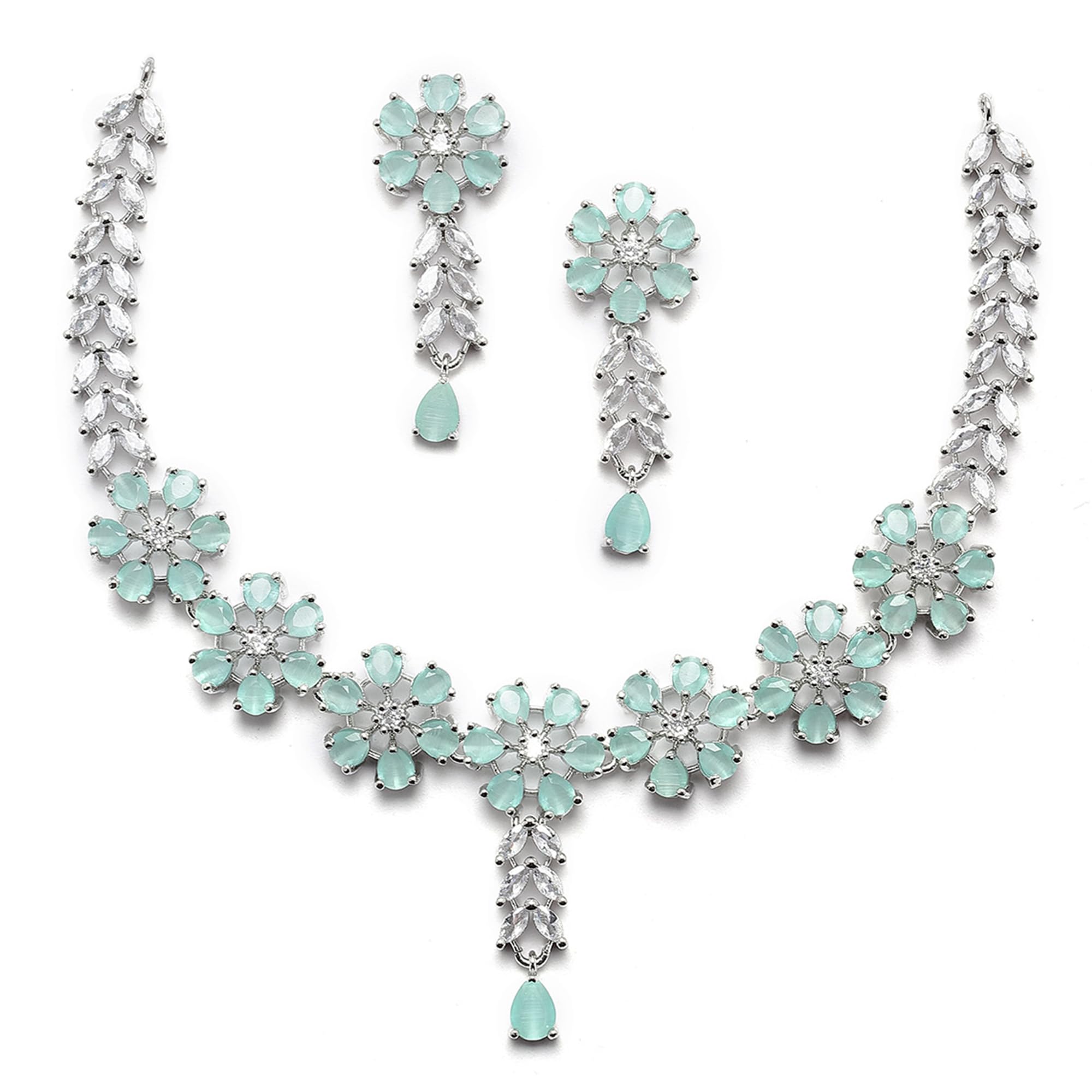ZENEME Rhodium-Plated Silver Toned Star Shaped American Diamond Studded Necklace Earrings Jewellery Set for Girls and Women