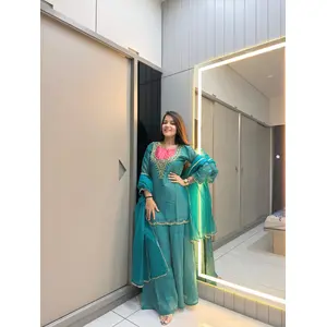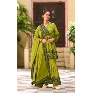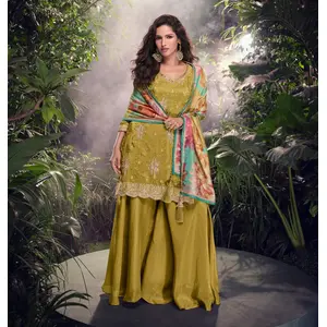 Mehendi Chinon Readymade Sharara Suit...