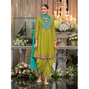 Green Embroderied Silk Stitched Dhoti...