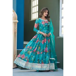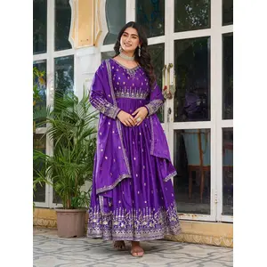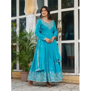 Blue Taby Silk Readymade Anarkali...