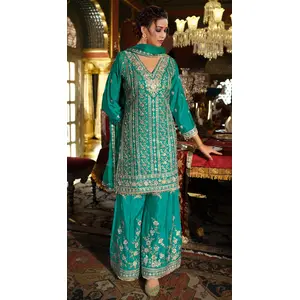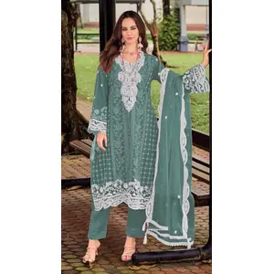 Turquoise Chinon Semi Stitched Suit...