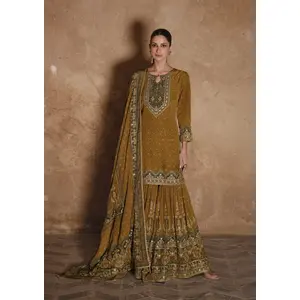 Designer Ethnic Suit Set Gold Crush...