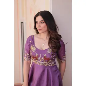 Lavender Art Silk Embroidered...