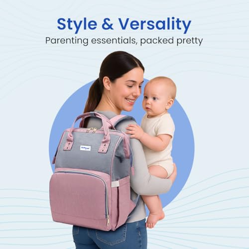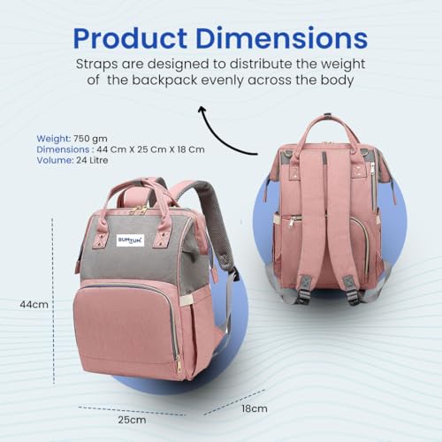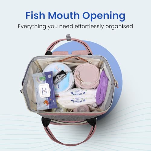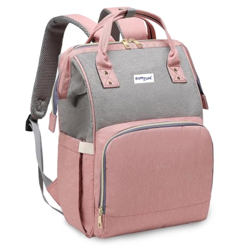 Bumtum Baby Diaper Bag for Mothers | Spacious Waterproof Backpack with Multiple Pockets to Easily Organise Baby Essentials Diaper Backpack Pink & Grey