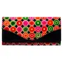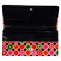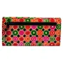 This is a handcrafted hand tooled painted women's wallet / clutch purse made from 100% genuine leather. It has a vibrant multicolored design on both sides. It closes with a button on the front. Inside the clutch there is a zipper compartment and multiple compartments for bills coins and credit cards. It also has a transparent compartment for storing photo identification card like your driver's license. The wallet also has a zipper compartment on the back. DIMENSIONS: Length: 8 inches Height: 4 inches Width (at base): 0.5 inches MATERIALS USED: 100% Genuine leather (vegetable tanned) PCP free chemicals Vegetable-based pigment colors Hammer Brush Wooden Blocks ORIGIN AND MAKING: This clutch purse is a classic example of age old Shantiniketan craft which was introduced in West Bengal India during the 1940s. It derives its name from the place where it was first introduced - Shantiniketan and was patronized by Nobel Laureate Rabindra Nath Tagore who revived a number of crafts that were nearing redundancy in Shantiniketan. The Shantiniketan style evolved as a result of the Art Movement and these products have now become world famous for their appliqu batik and embossed craft work. The process of burnishing the leather gives it an elegant sheen and brings out the colors. The major embossing craft is done by hand and is an intricate process. After the final leather made it is then stitched into the desired product coated with a lacquer finish for making the product shiny and long lasting. The traditional motifs used for these Shantiniketan bags depict the rich cultural heritage of India.
