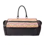Travel in style with this bright & attractive woven multicolour travel duffle luggage bag made from high quality genuine full grain leather & cotton dari. Whether jet-setting around the world or going on a weekend trip this bag is sure to make heads turn. It fastens fully with a zipper on top. Very spacious to store all your essential stuff it has an inner zipper compartment along with two other open compartments inside the bag. Also there are two pockets on the sides for extra storage & convenience that close with a magnetic button. The padded double handles are comfortable to hold & it also comes with an adjustable & detachable shoulder strap. So carry it as a hand-held bag or over your shoulders. The bag has rivets / protective feet at the bottom. Dimensions: Length- 18.8 inches Height- 13.3 inches Width (at base)- 9 inches