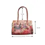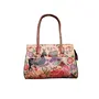 Handcrafted from Leather a Beautiful Ethnic Art of West Bengal. Design on Both Sides Double Shoulder Tote Handle One Main Zipper compartment One Zipper pocket in Back and Three Compartments inside Two zipper and One open cell phone compartment. Closes fully with zip. Traditional Block print. This purse is a classic example of age old Shantiniketan craft which was introduced in West Bengal India during the 1940s. The traditional motifs used for these Shantiniketan bags depict the rich cultural heritage of India. It derives its name from the place where it was first introduced - Shantiniketan and was patronized by Nobel Laureate Rabindra Nath Tagore who revived a number of crafts that were nearing redundancy in Shantiniketan. The Shantiniketan style evolved as a result of the Art Movement and these products have now become world famous for their applique batik and embossed craft work. The process of burnishing the leather gives it an elegant sheen and brings out the colors. The major embossing craft is done by hand and is an intricate process. After the final leather made it is then stitched into the desired product coated with a lacquer finish for making the product shiny and long-lasting.