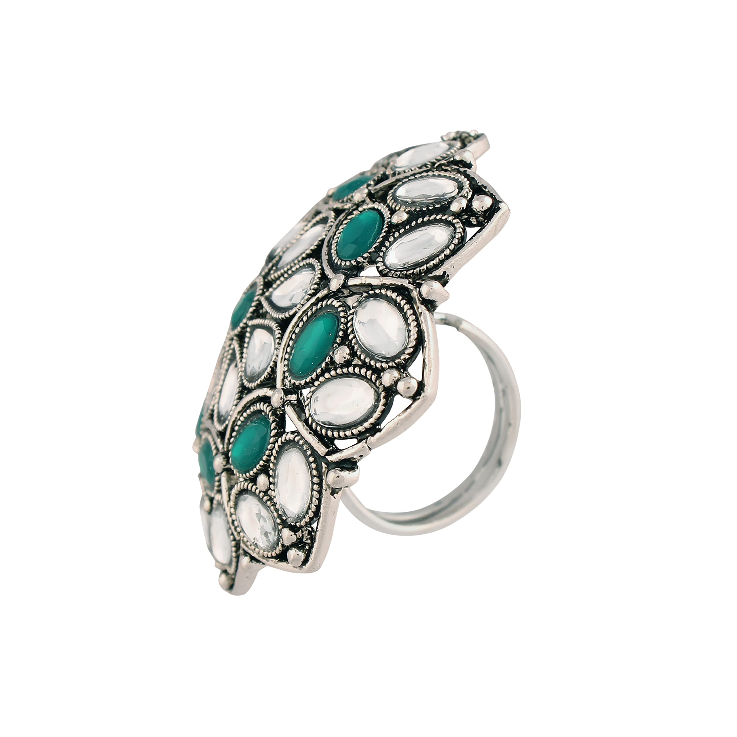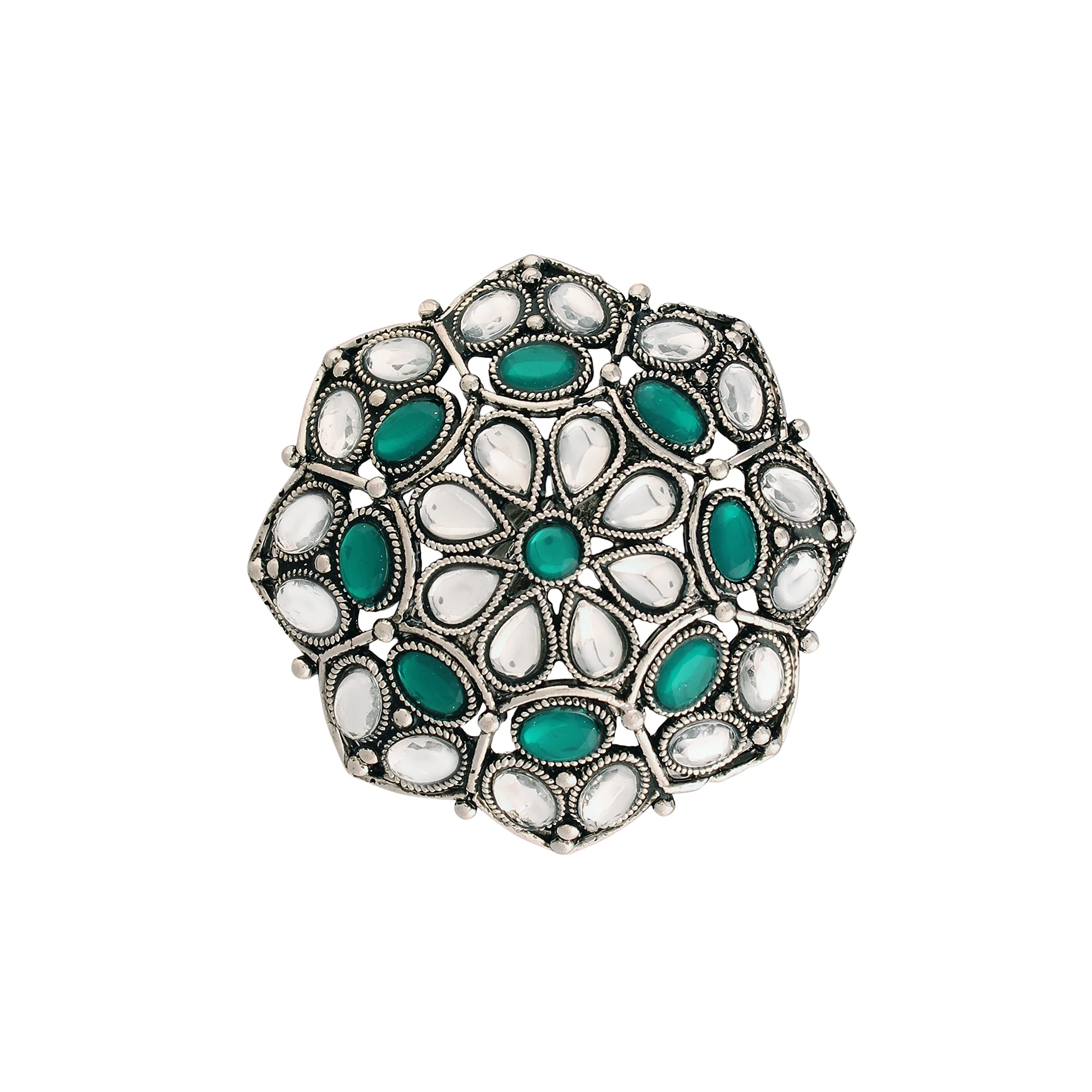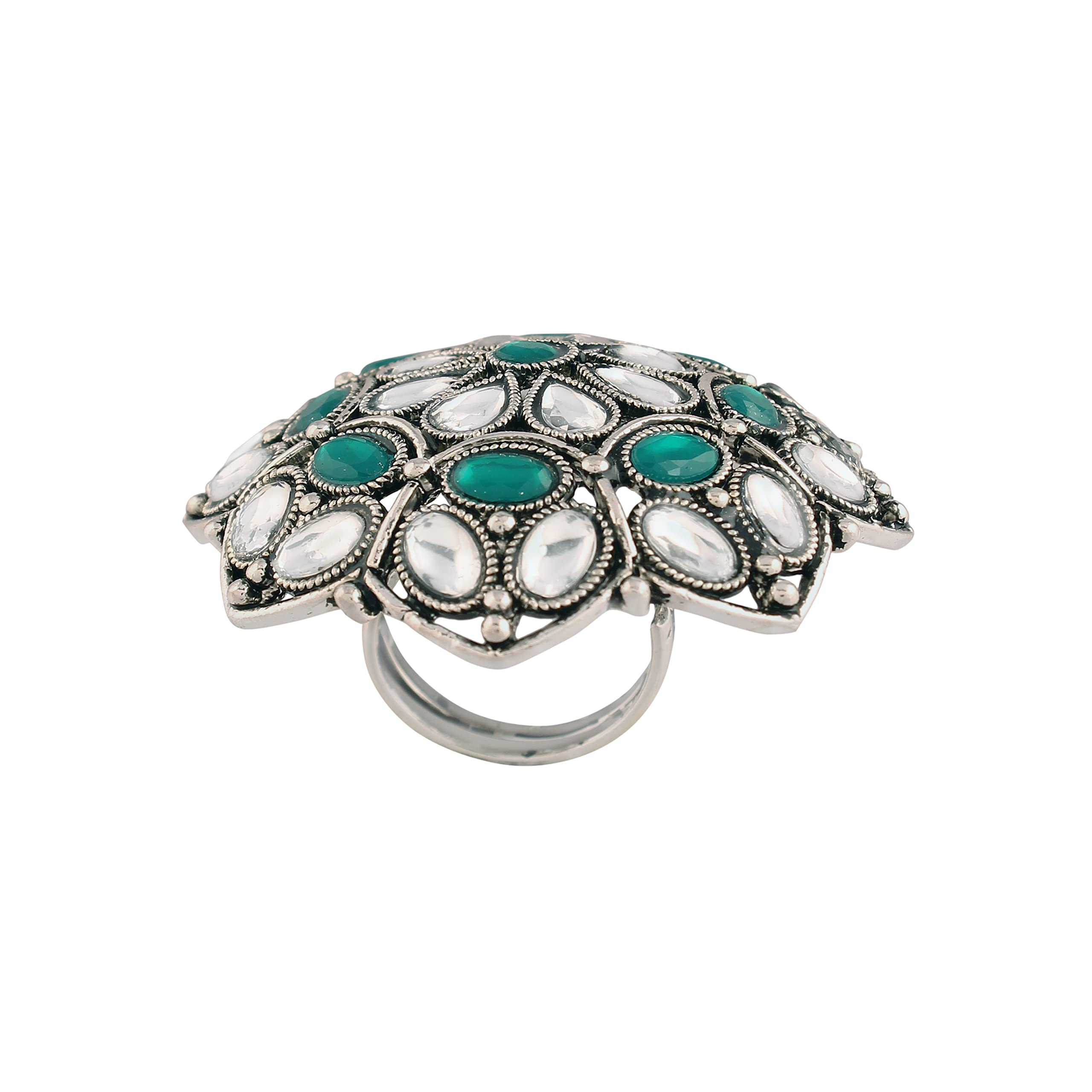 I Jewels Silver Oxidized Kundan Work Designer Adjustable Finger Ring for Women (FL204)