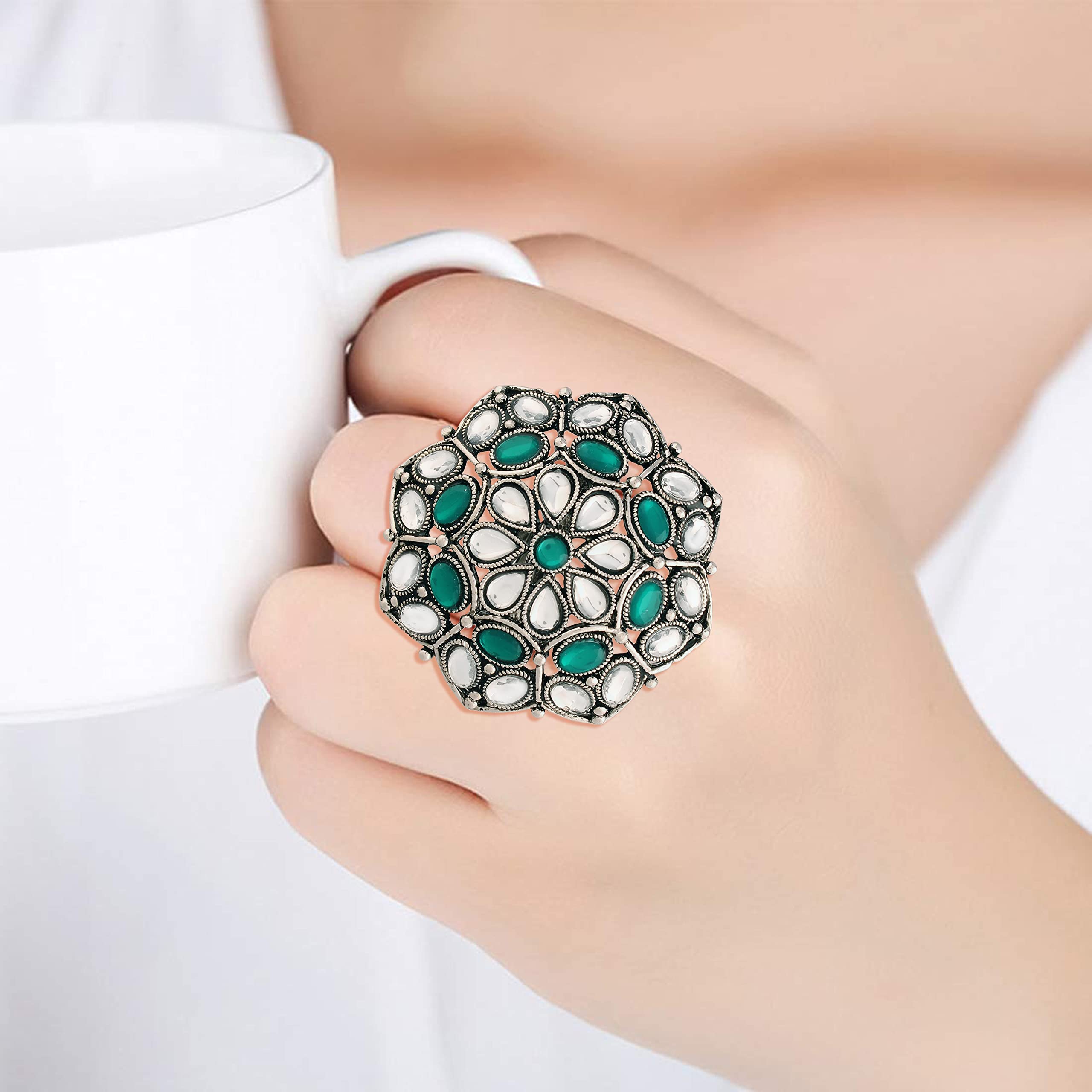 Rings come in a Silver Oxidized plated finish with stunning stones to make these exquisite rings really special - this ring is light in weight & can be paired with almost any outfit. Perfect accessory for every jewelry box!