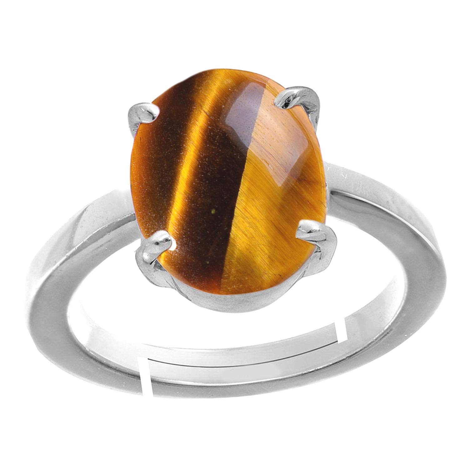 RRVGEM 5.25 Ratti Natural Earth Mined Tiger Eye/Tiger Stone/Tiger's Eye Natural Certified Tiger eye Ring Silver plated chitti Stone For Men And Women