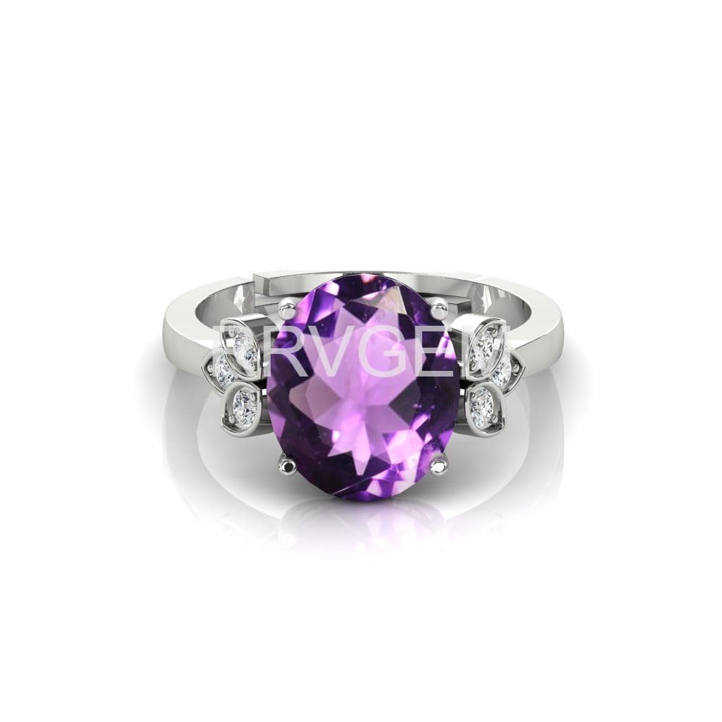 RRVGEM amethyst ring 11.50 Ratti Handcrafted Finger Ring With Beautifull Stone katela/jamuniya ring Silver Plated for Men and Women