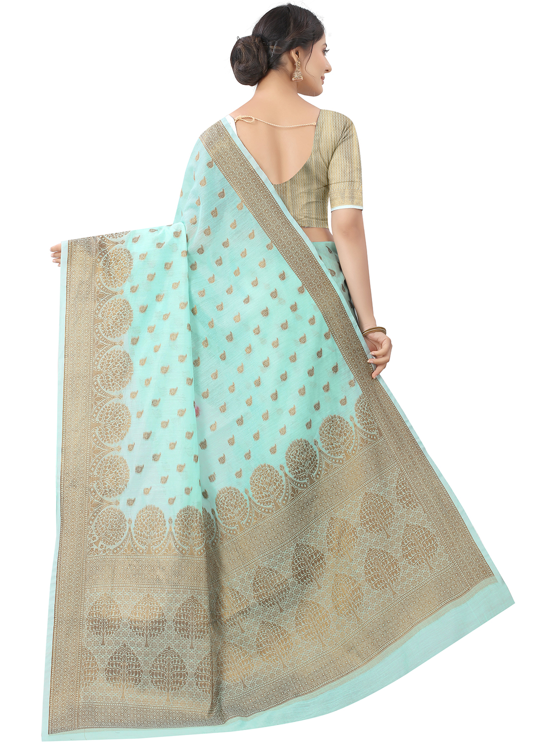 AASTHA FASHION Fashion Dream Womens Aqua Blue Cotton Silk Saree | Soft & Elegant Traditional Wear