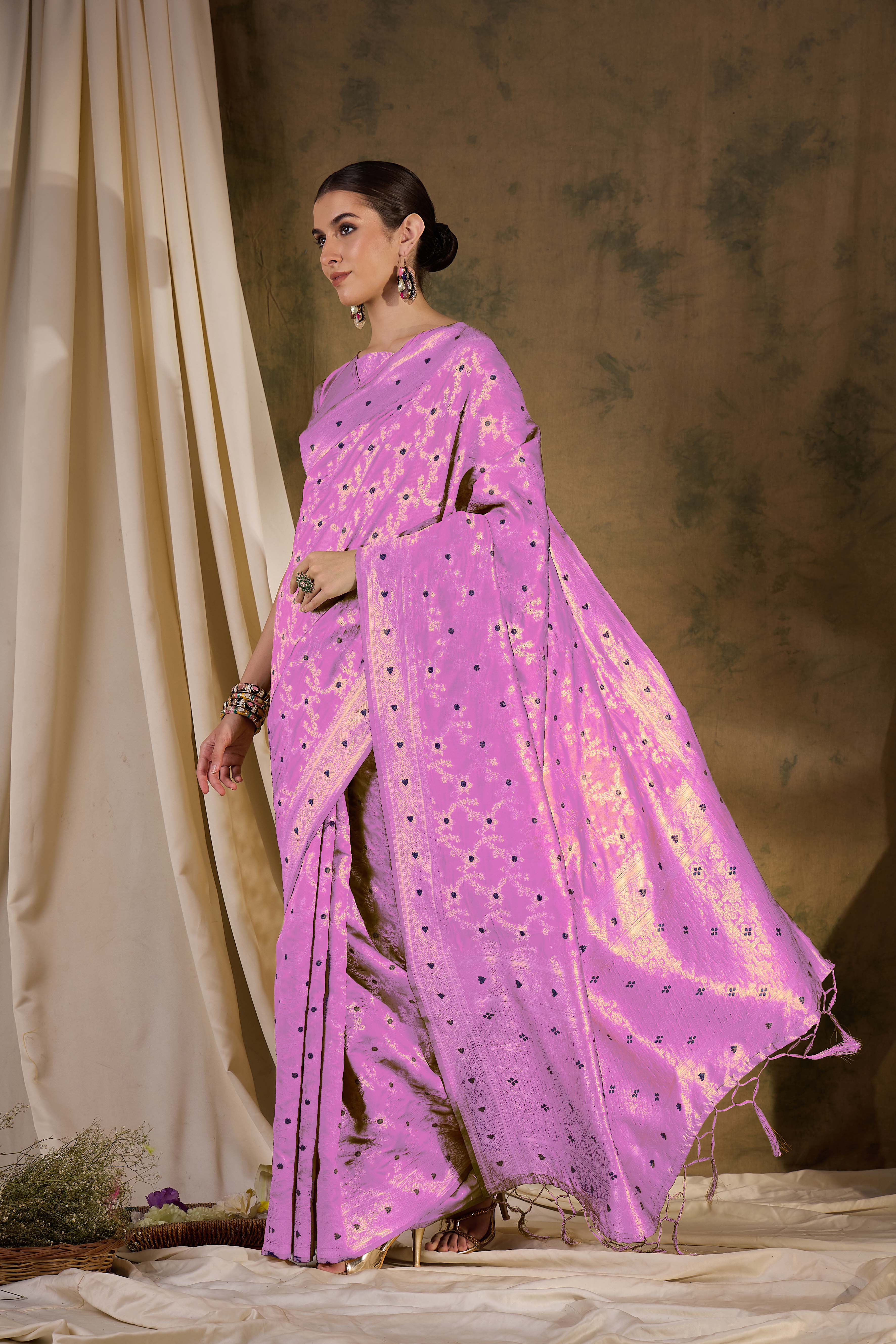 AASTHA FASHION Fashion Dream Womens Baby Pink Banarasi Silk Saree | Soft & Elegant Traditional Wear