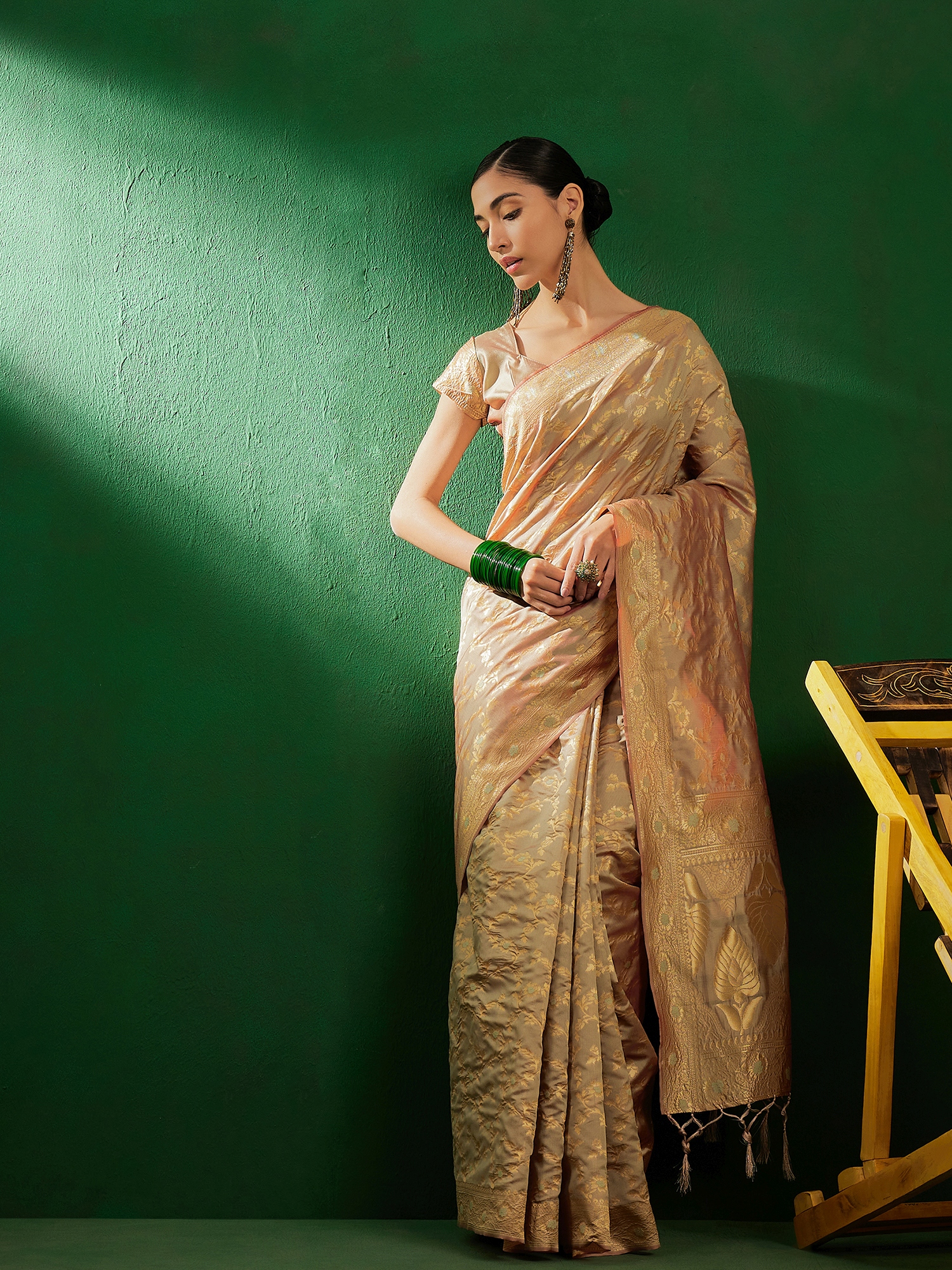 AASTHA FASHION Fashion Dream Womens Beige Banarasi Silk Saree | Soft & Elegant Traditional Wear