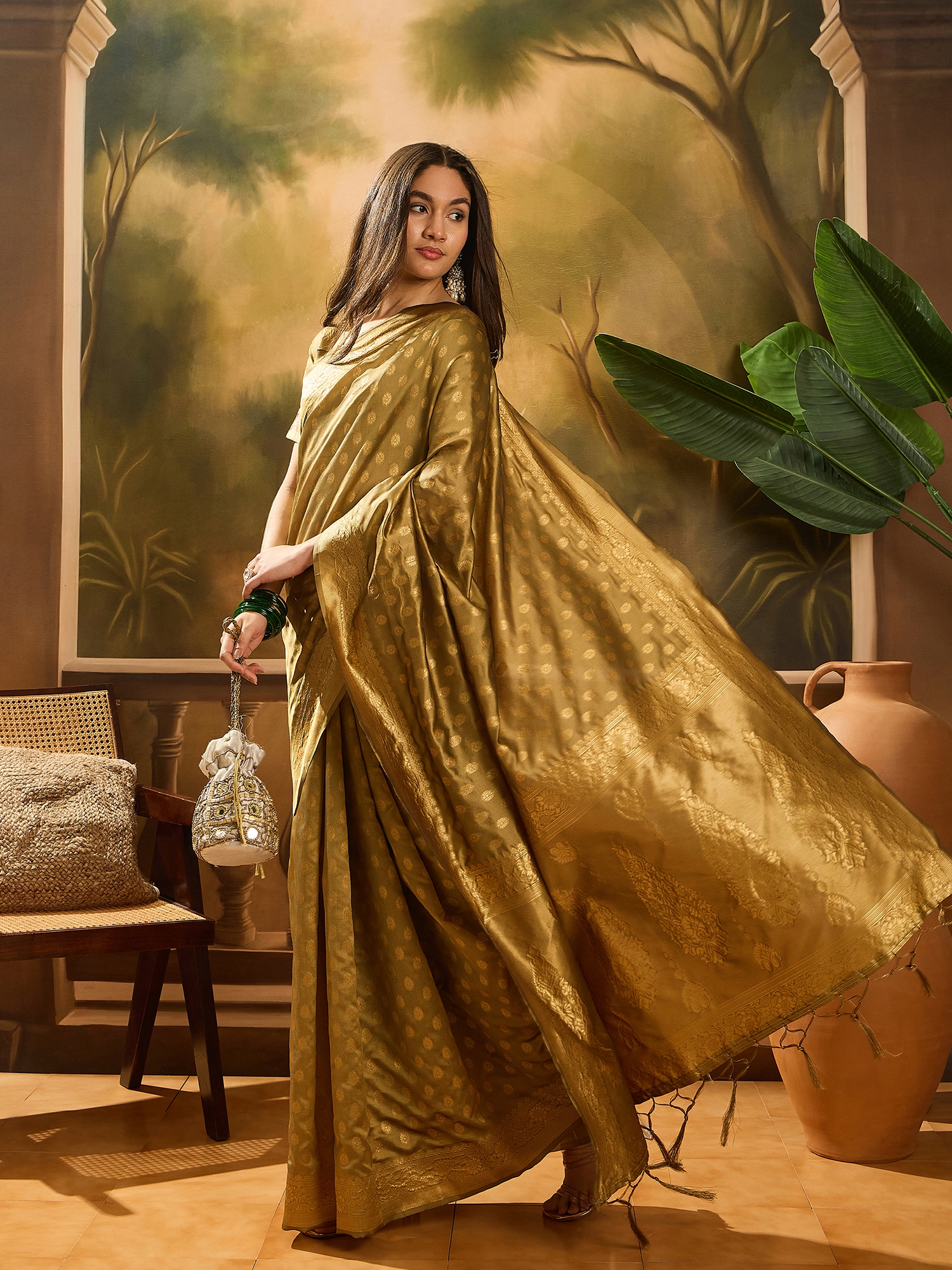 AASTHA FASHION Fashion Dream Womens Beige Banarasi Silk Saree | Soft & Elegant Traditional Wear
