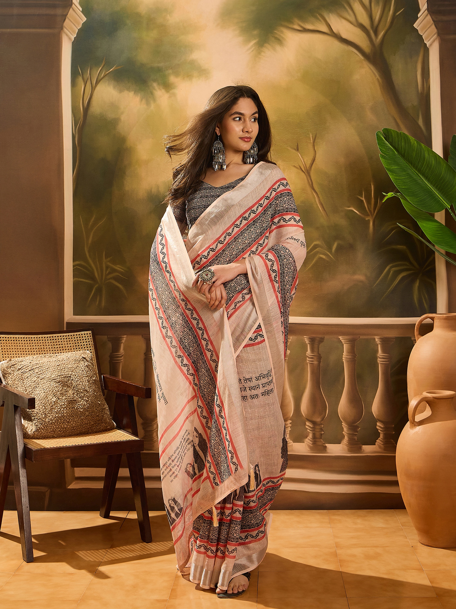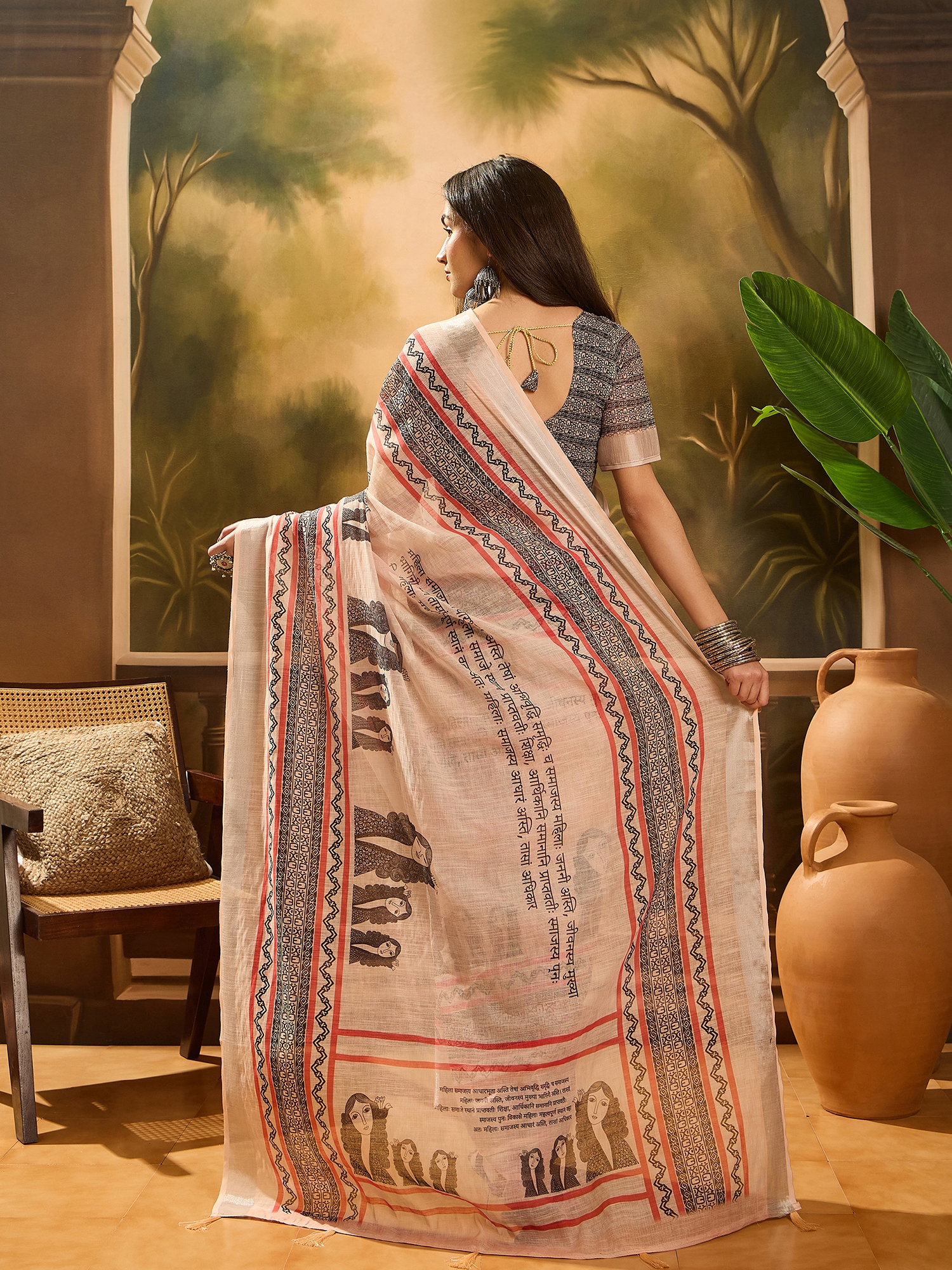 • Saree Fabric-Linen Cotton Blend ,Blouse Fabric-Linen Cotton Blend