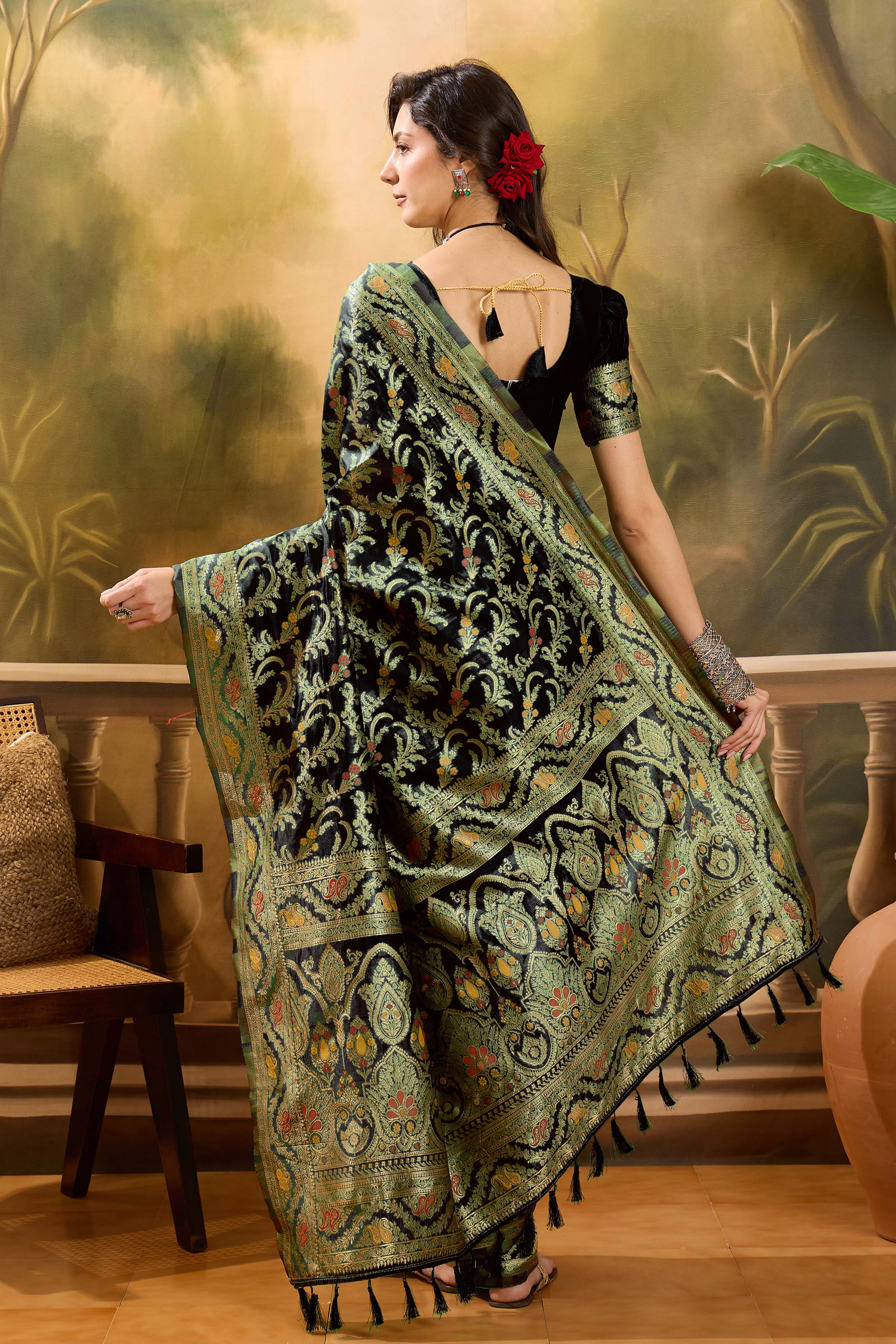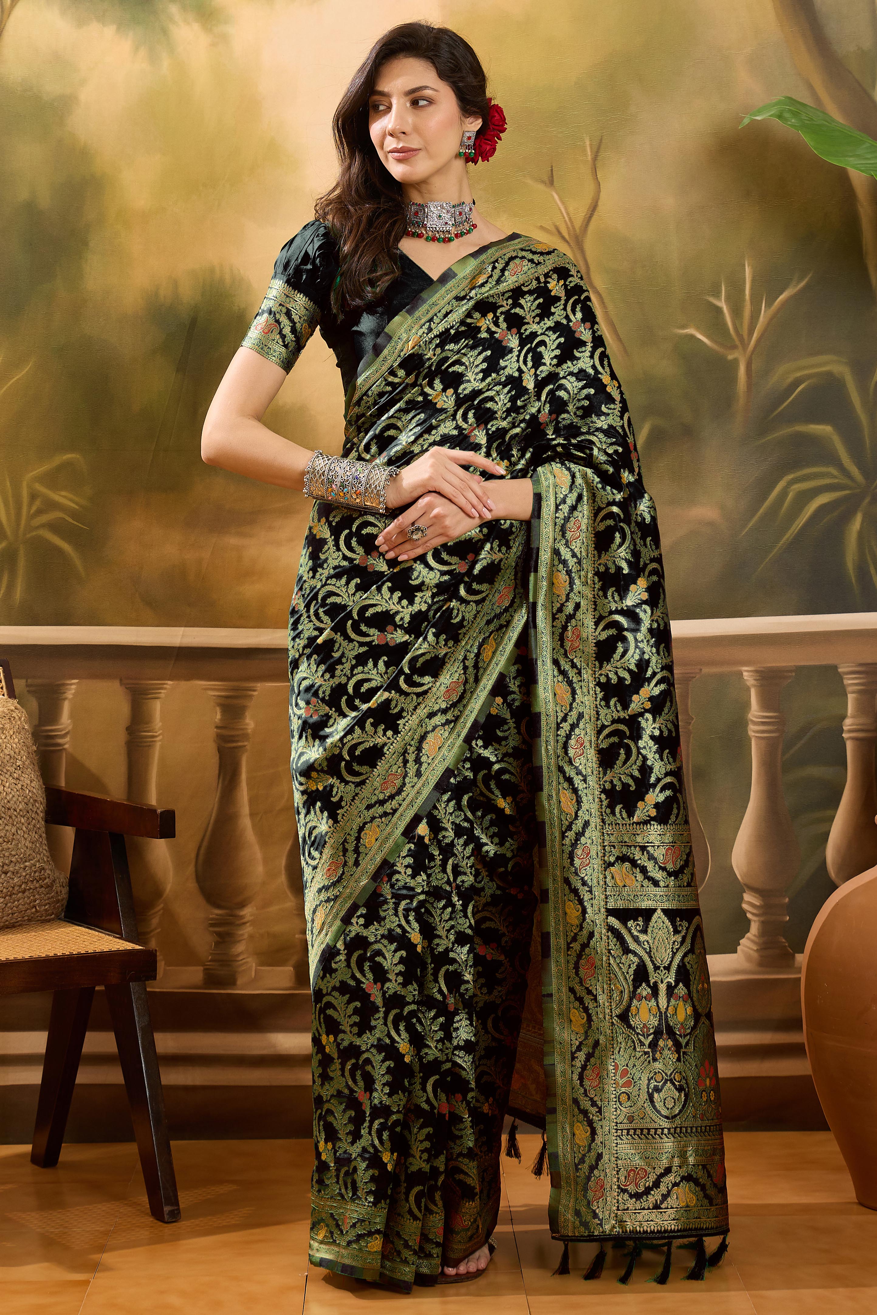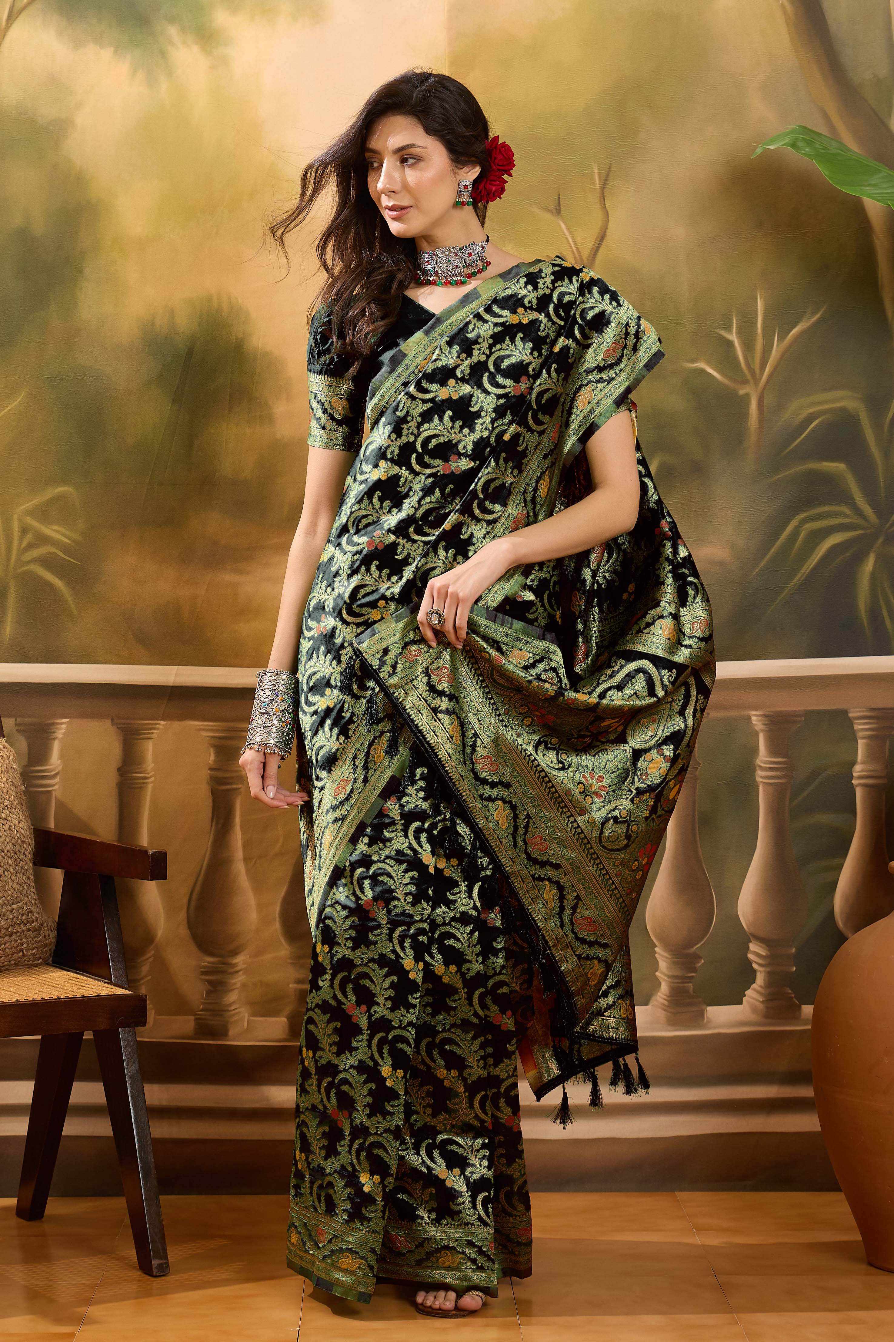 AASTHA FASHION Fashion Dream Womens Black Banarasi Jacquard Saree | Soft & Elegant Traditional Wear