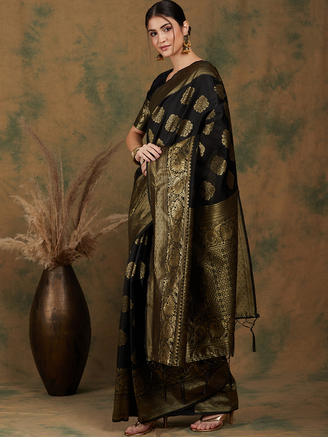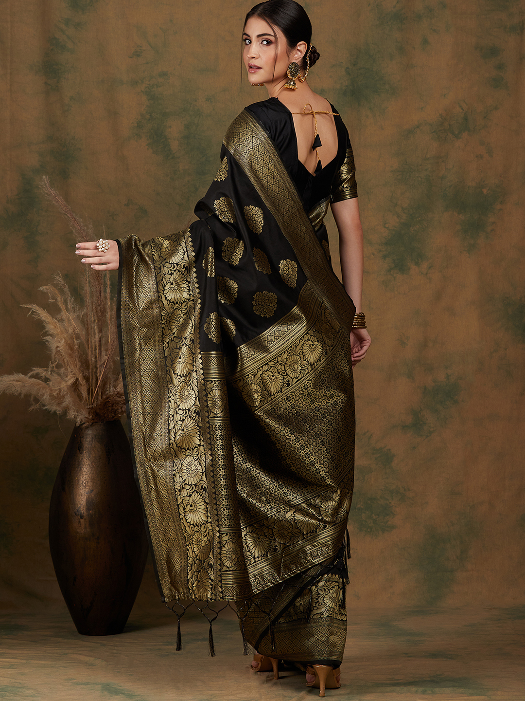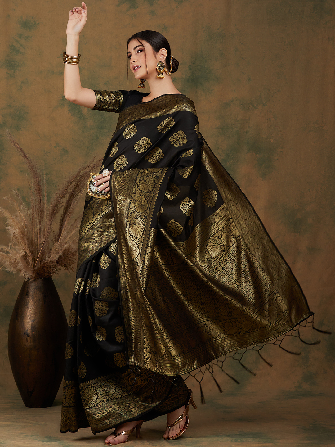 AASTHA FASHION Fashion Dream Womens BLACK Banarasi Silk Saree | Soft & Elegant Traditional Wear