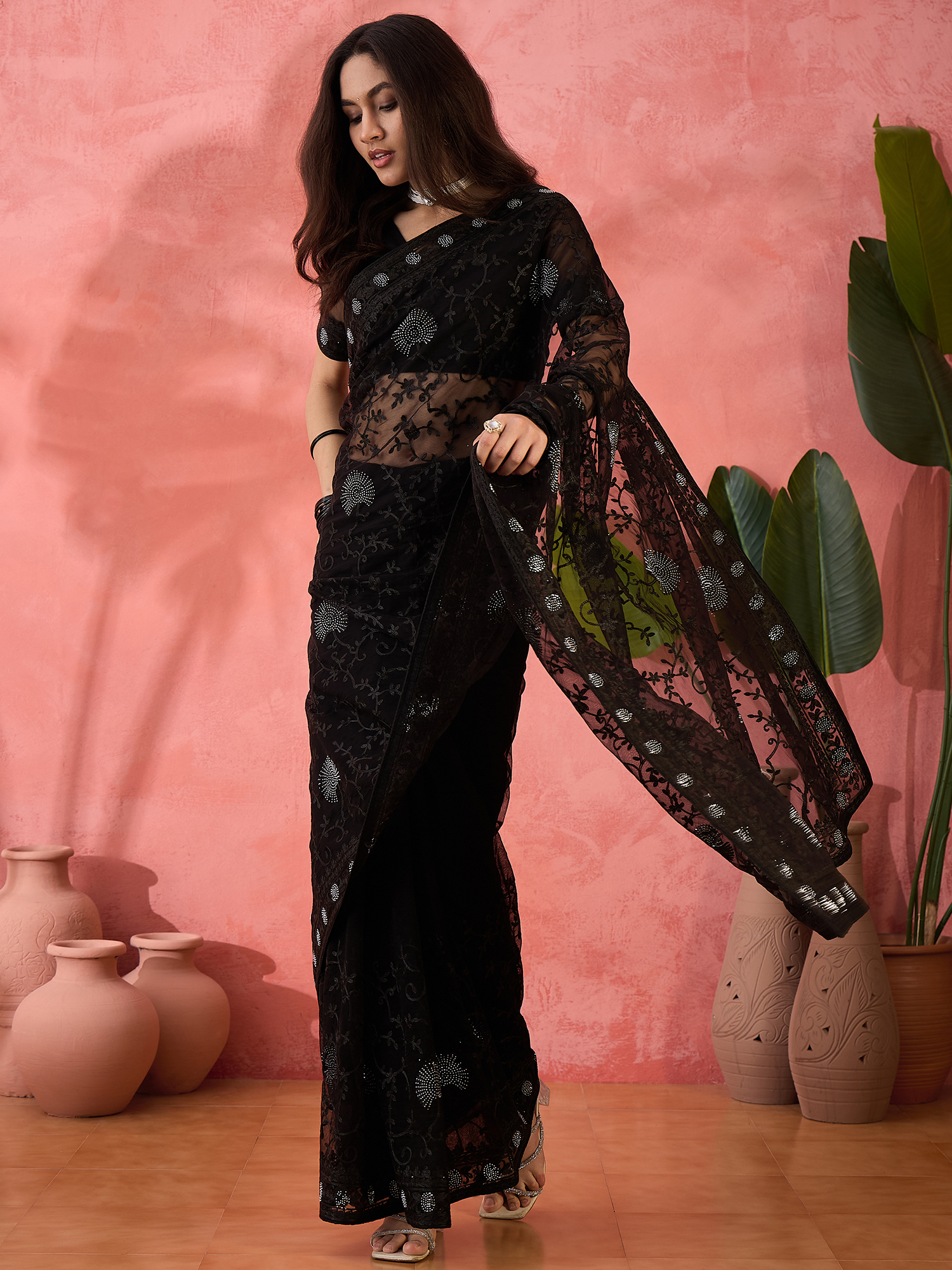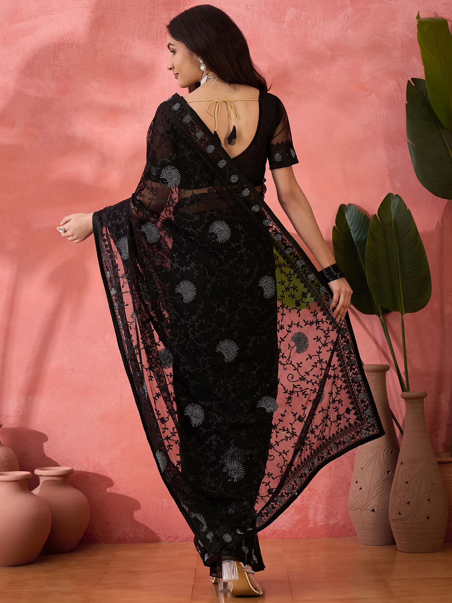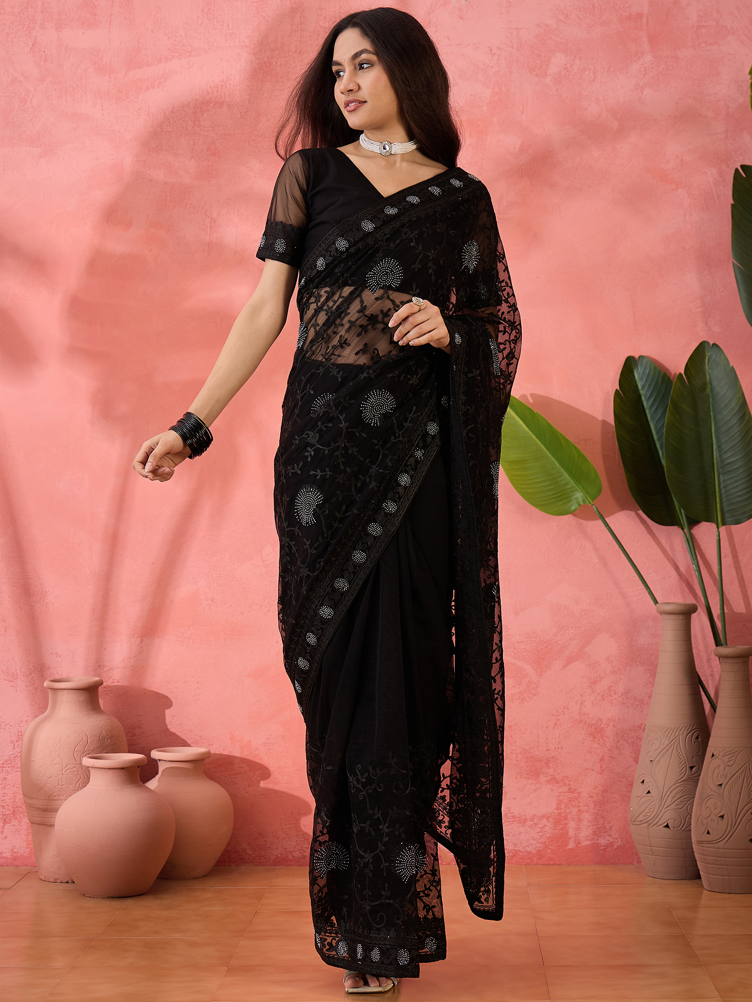 AASTHA FASHION Fashion Dream Womens Black Net Saree | Soft & Elegant Traditional Wear