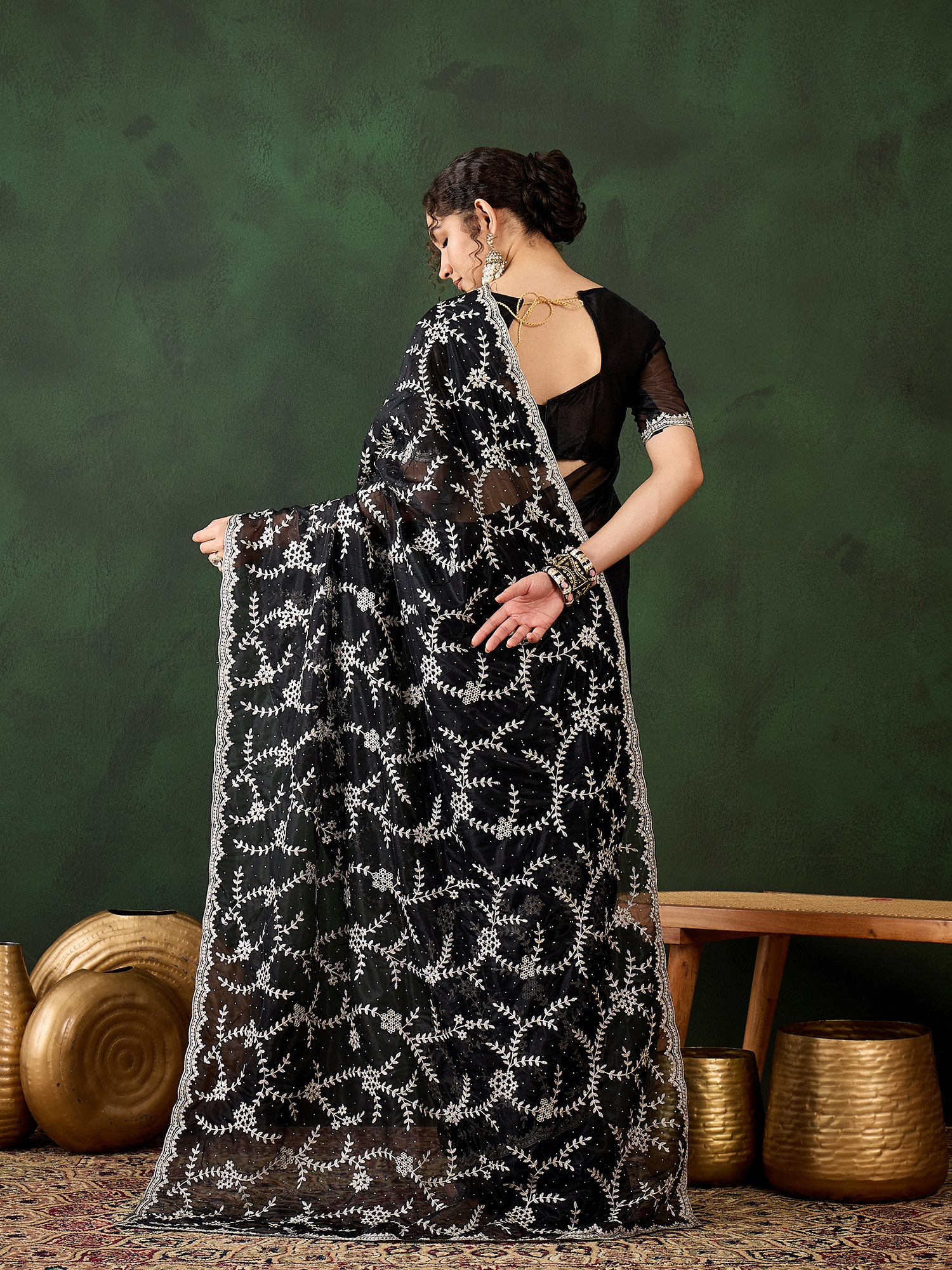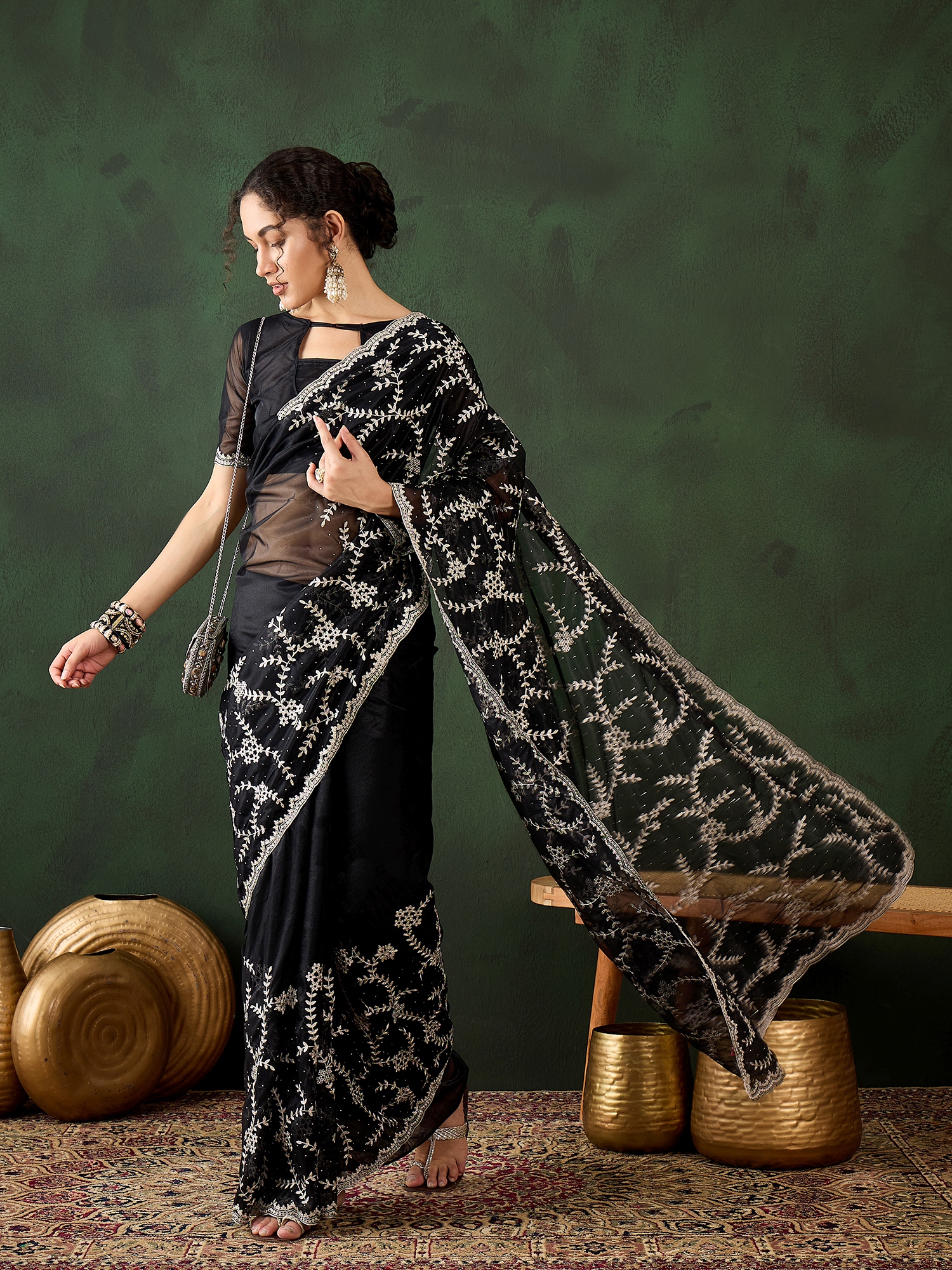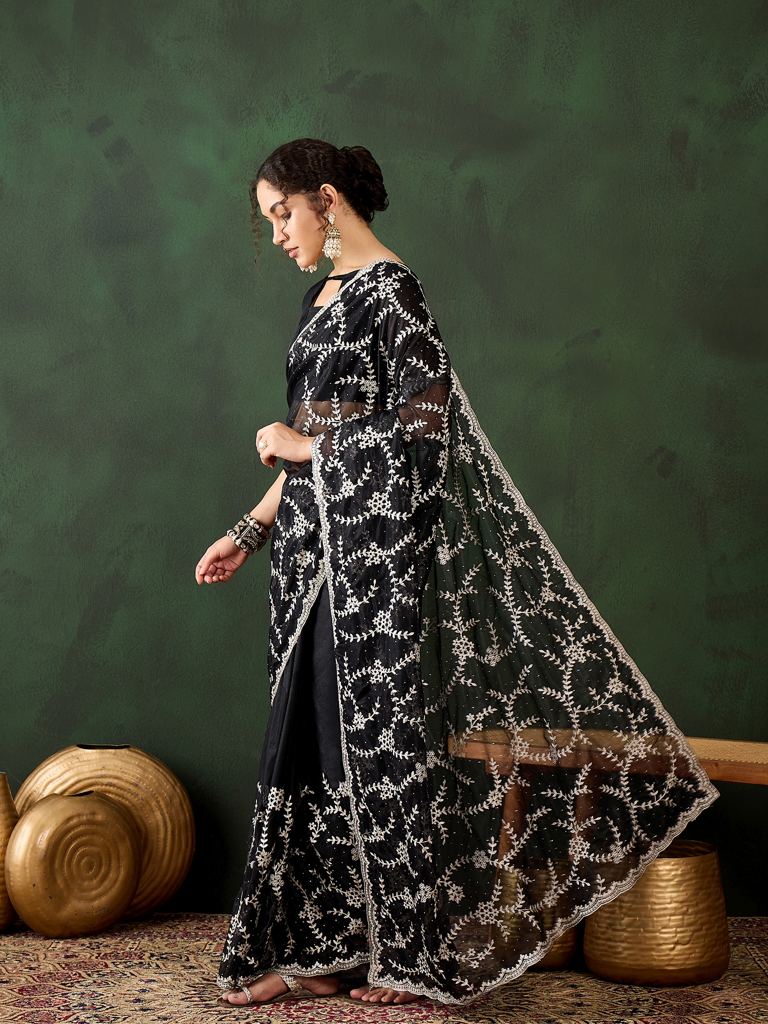 AASTHA FASHION Fashion Dream Womens Black Simmer Saree | Soft & Elegant Traditional Wear