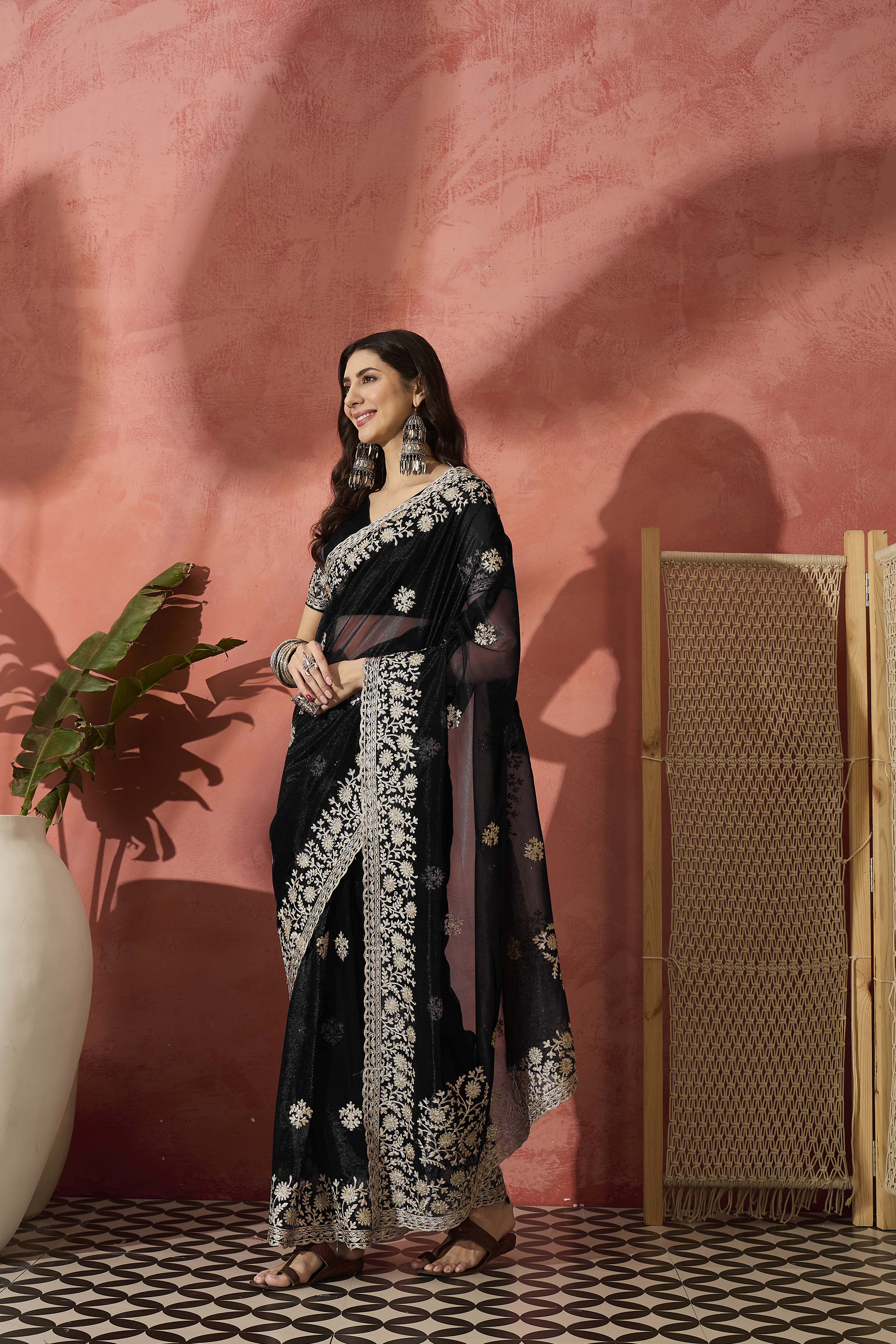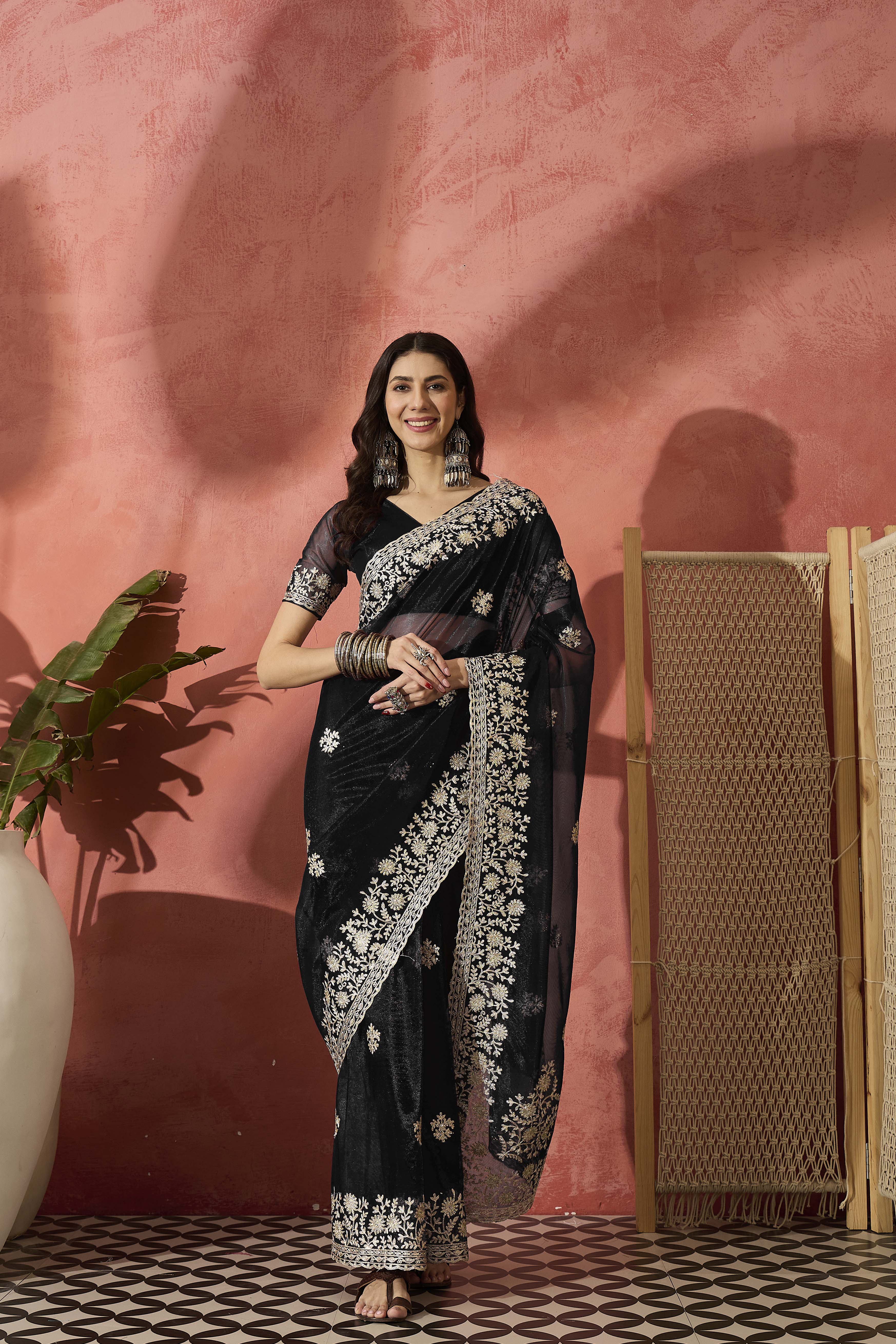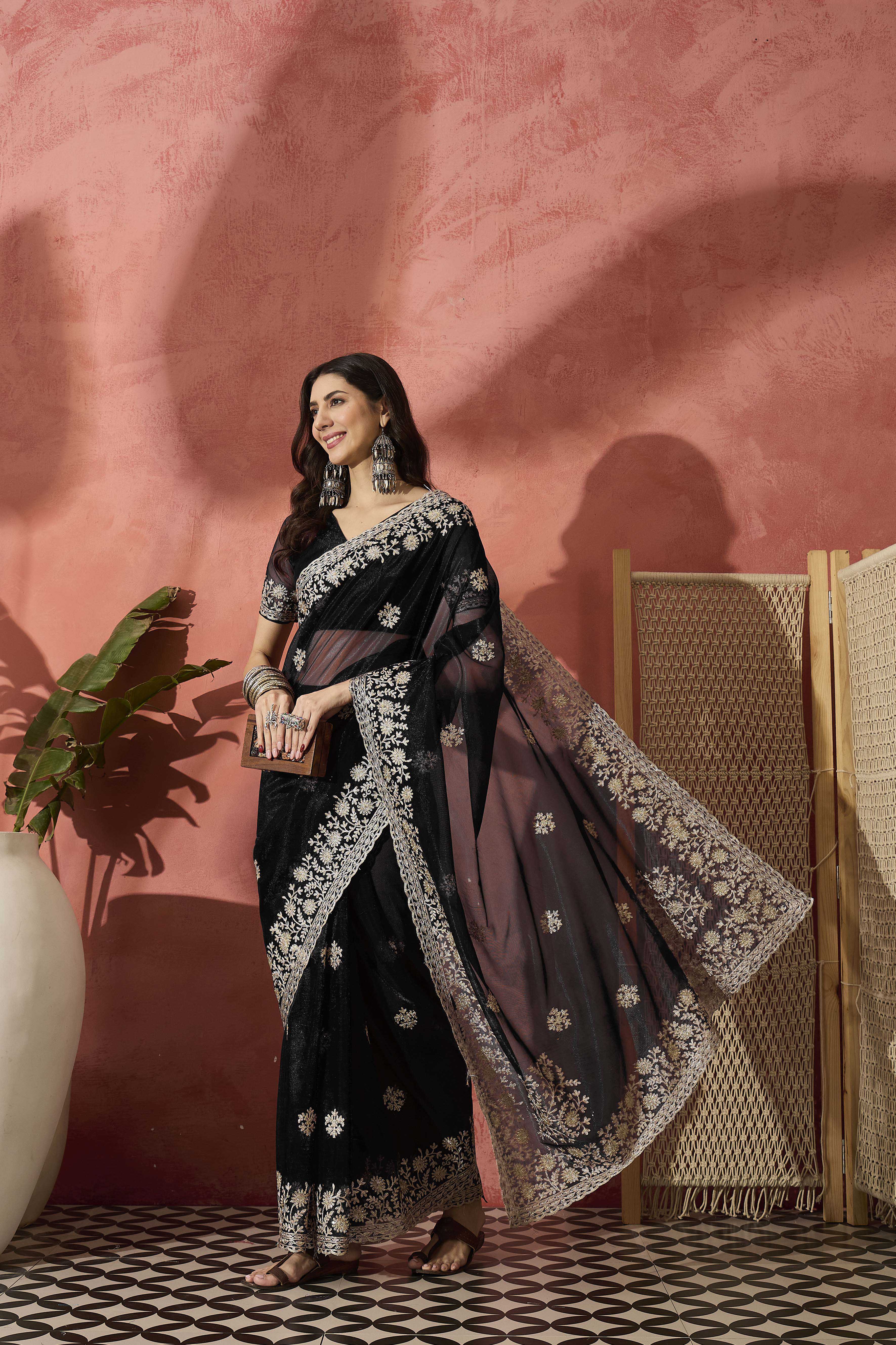 AASTHA FASHION Fashion Dream Womens Black Twil Net Saree | Soft & Elegant Traditional Wear