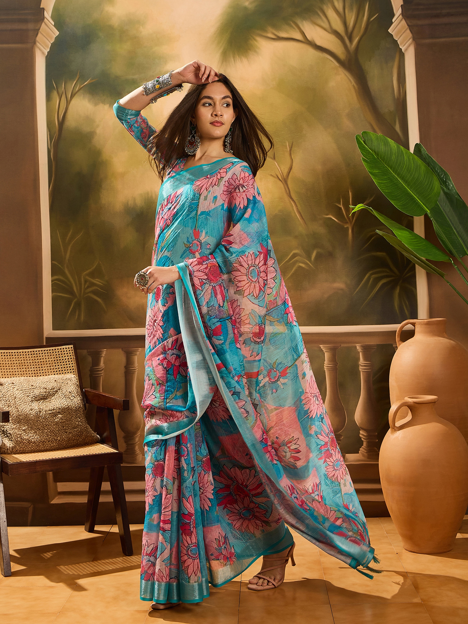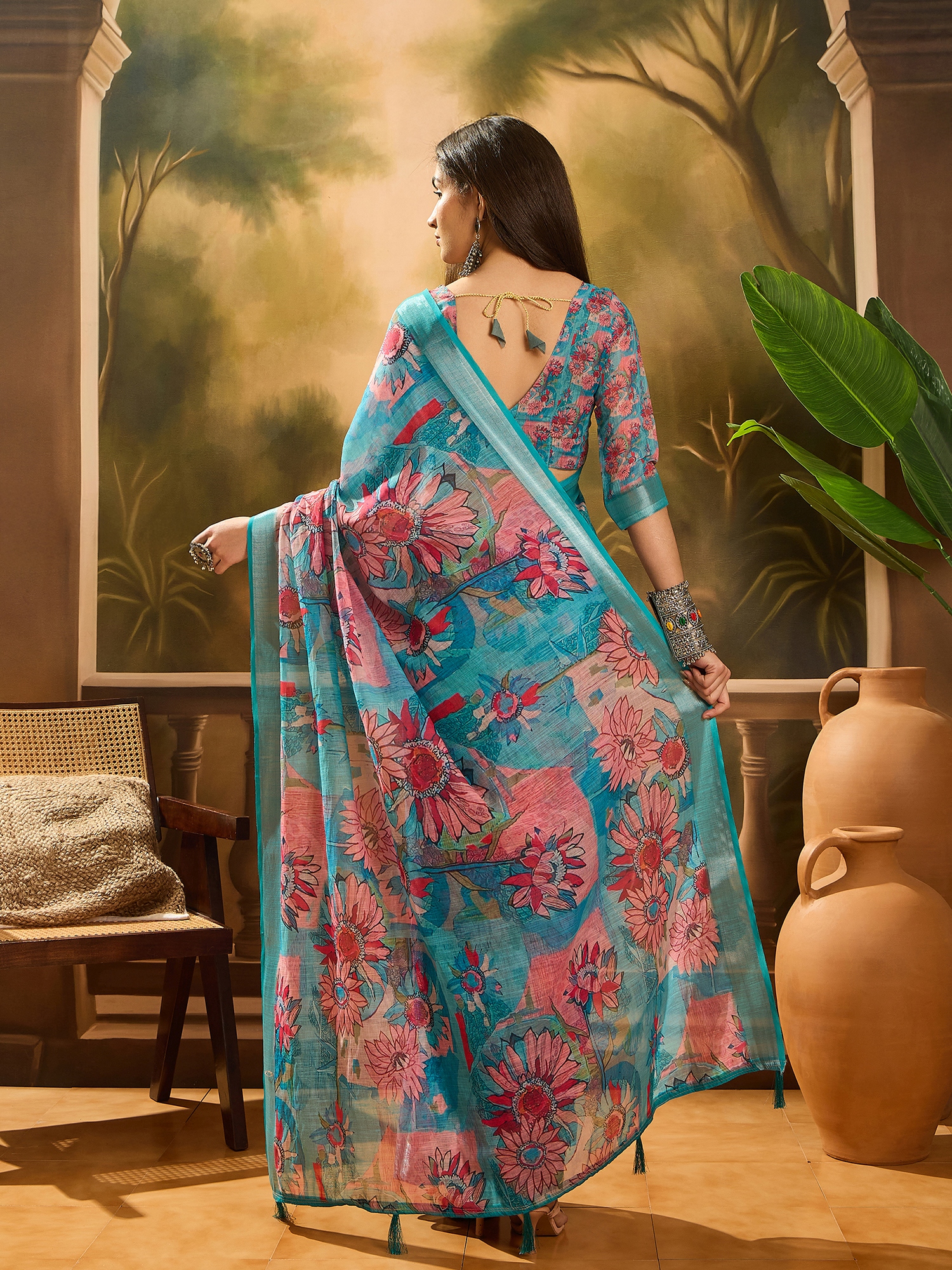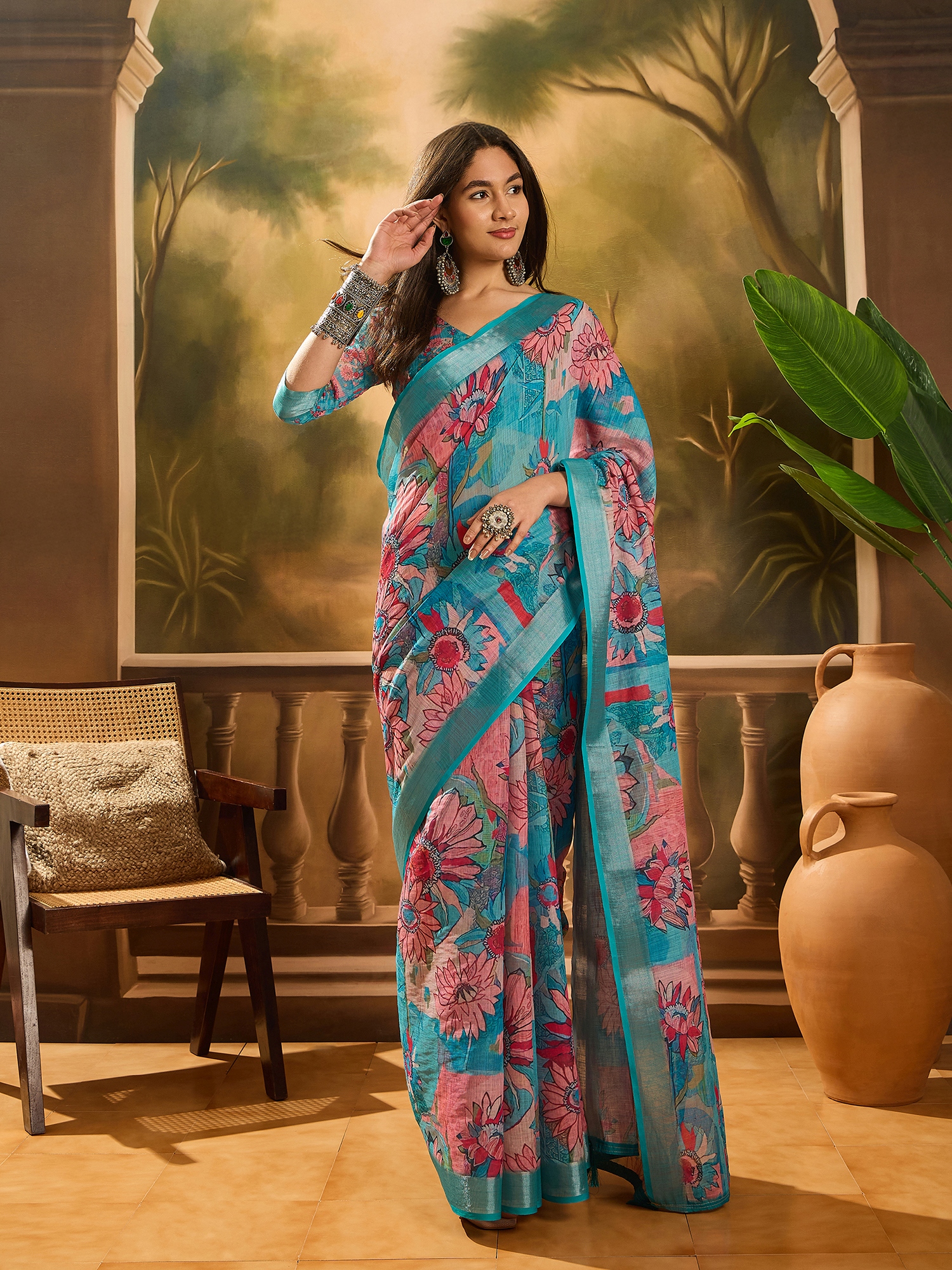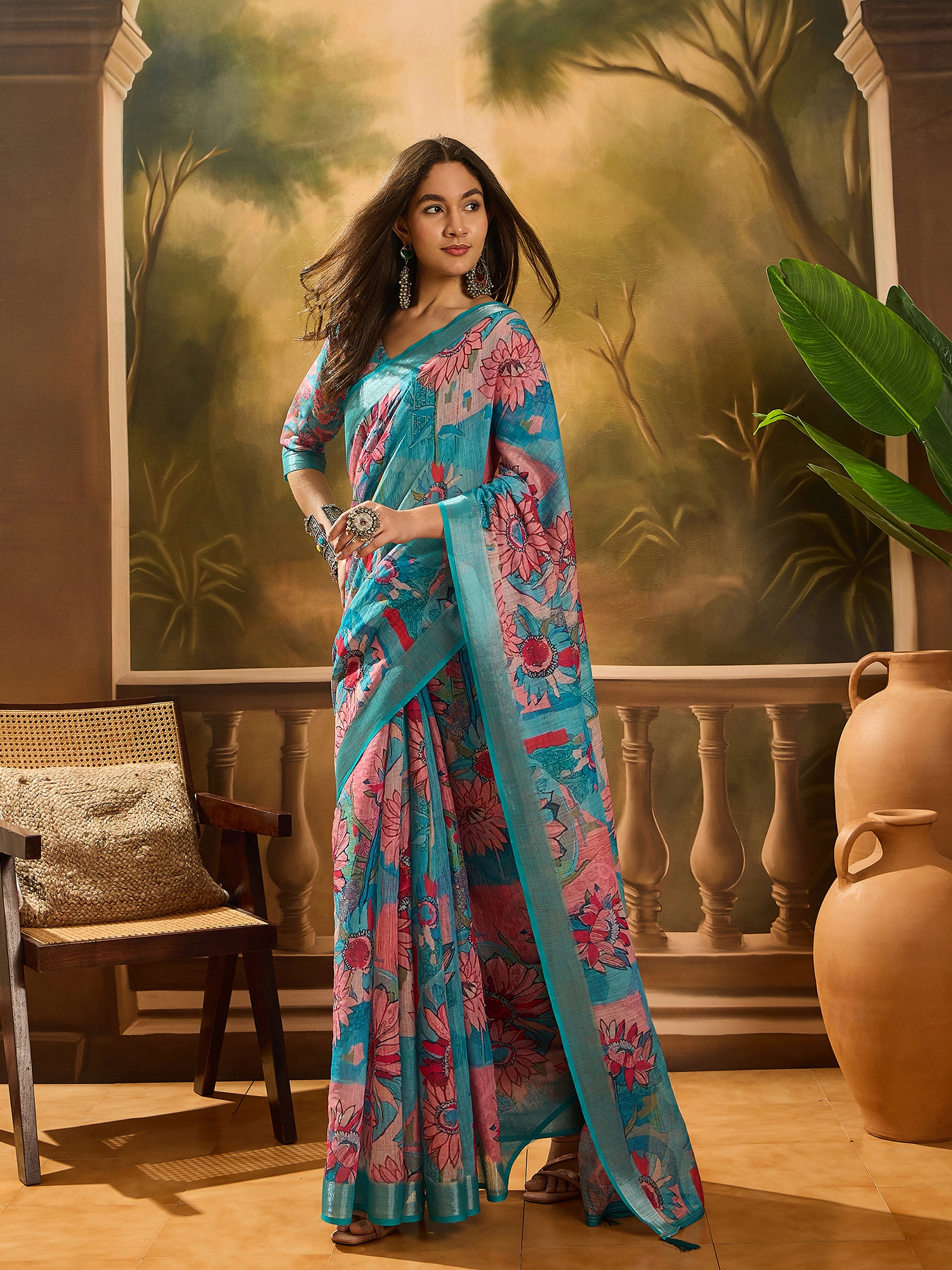 AASTHA FASHION Fashion Dream Womens Blue Linen Cotton Blend Saree | Soft & Elegant Traditional Wear