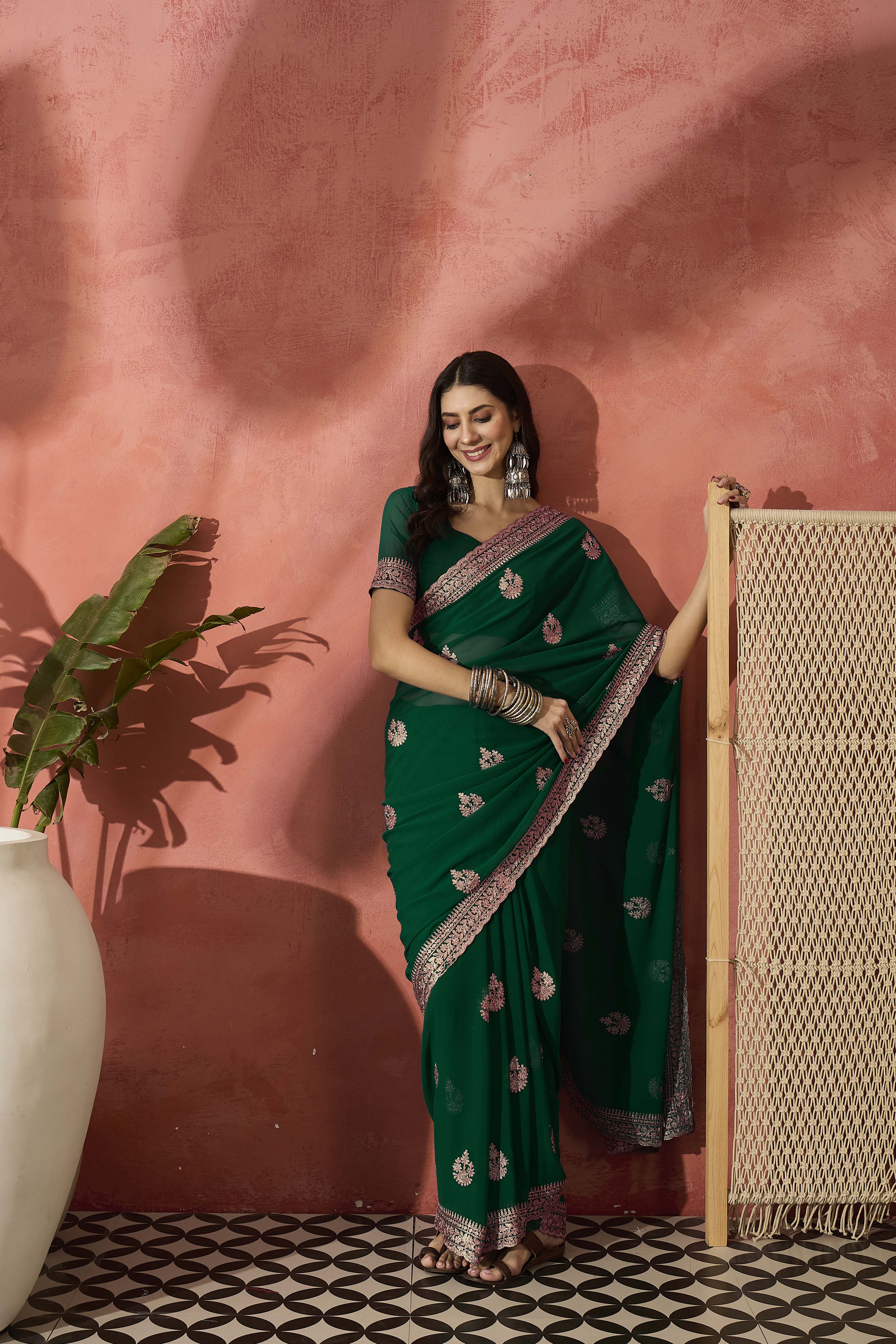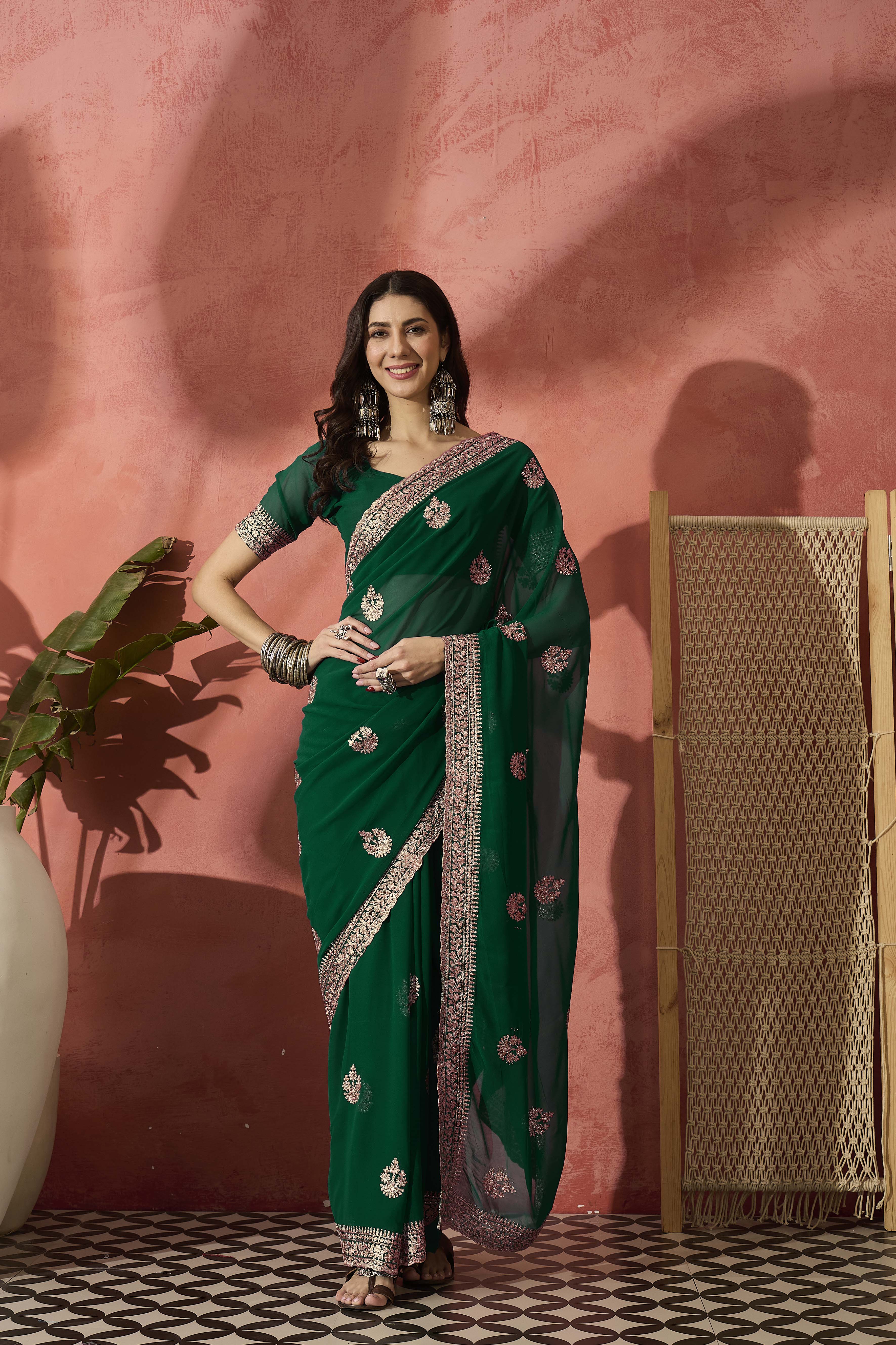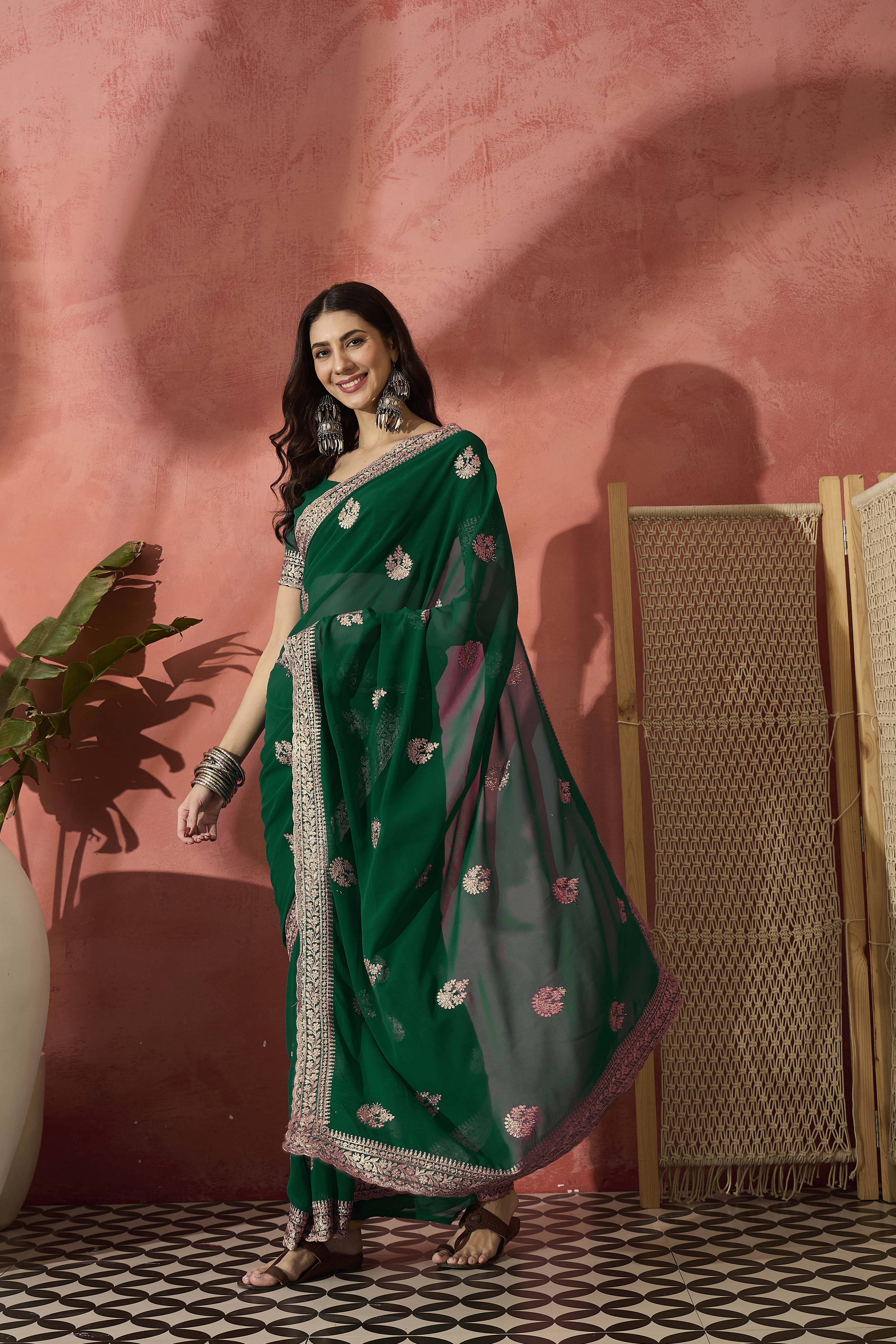AASTHA FASHION Fashion Dream Womens Bottle Green Georgette Saree | Soft & Elegant Traditional Wear