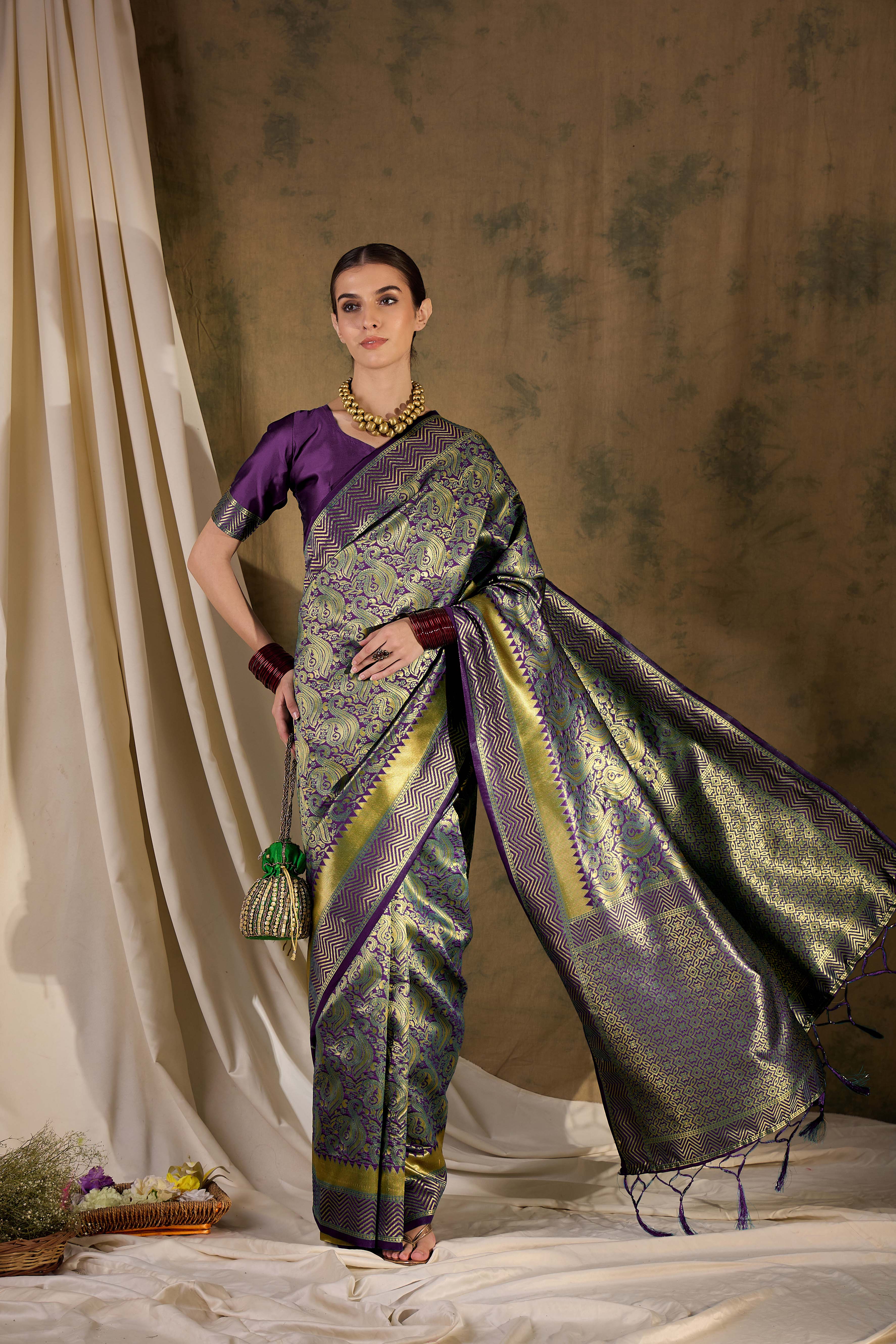 • Saree Fabric-Banarasi Silk ,Blouse Fabric-Banarasi Silk