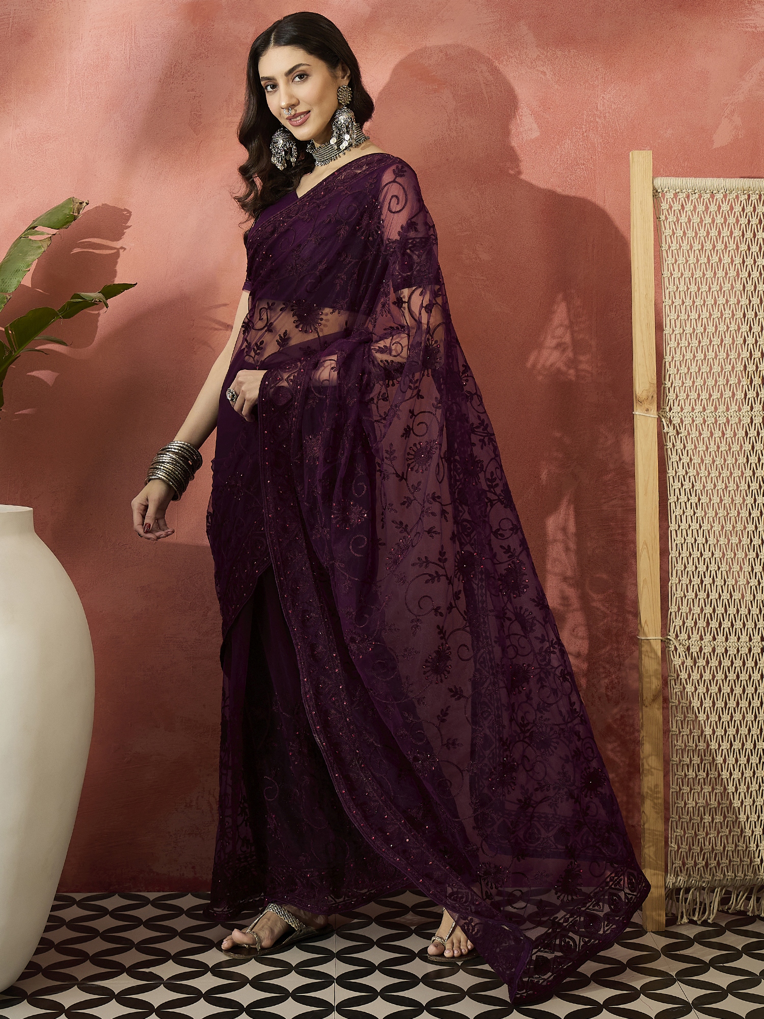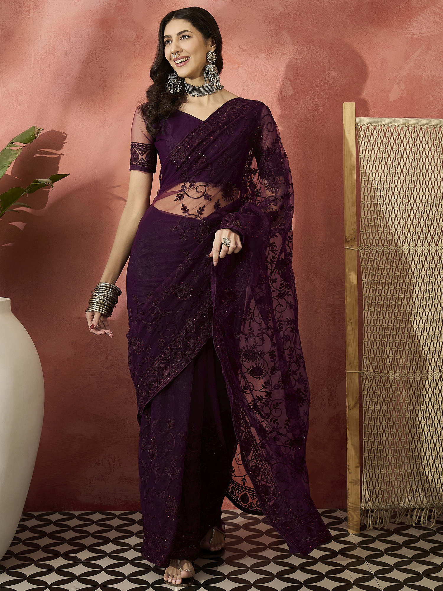 AASTHA FASHION Fashion Dream Womens Burgundy Net Saree | Soft & Elegant Traditional Wear