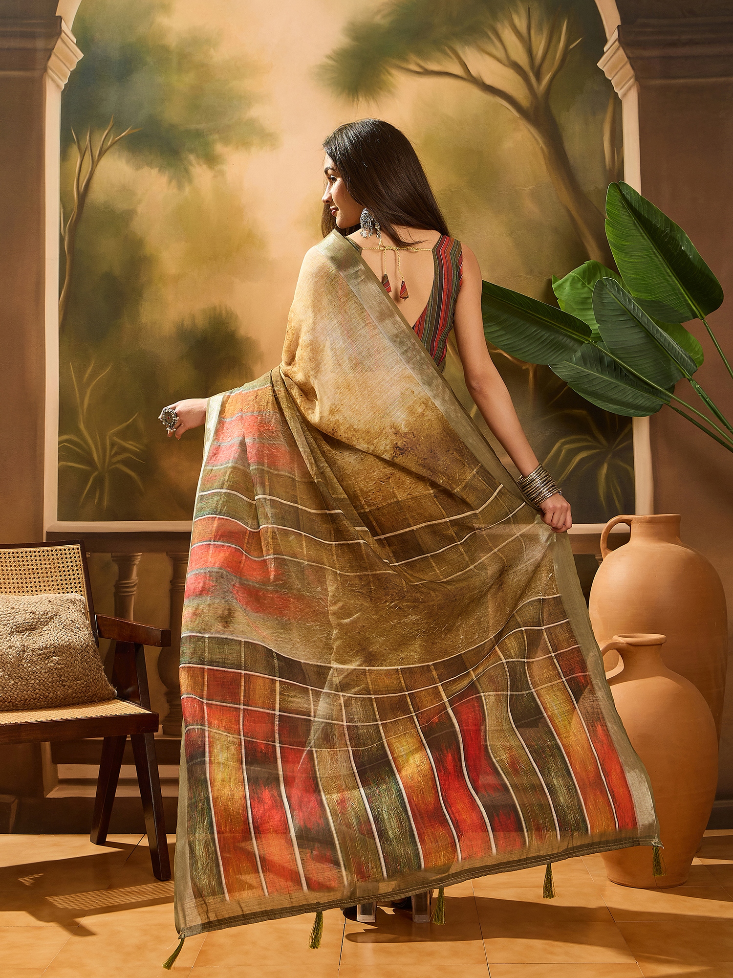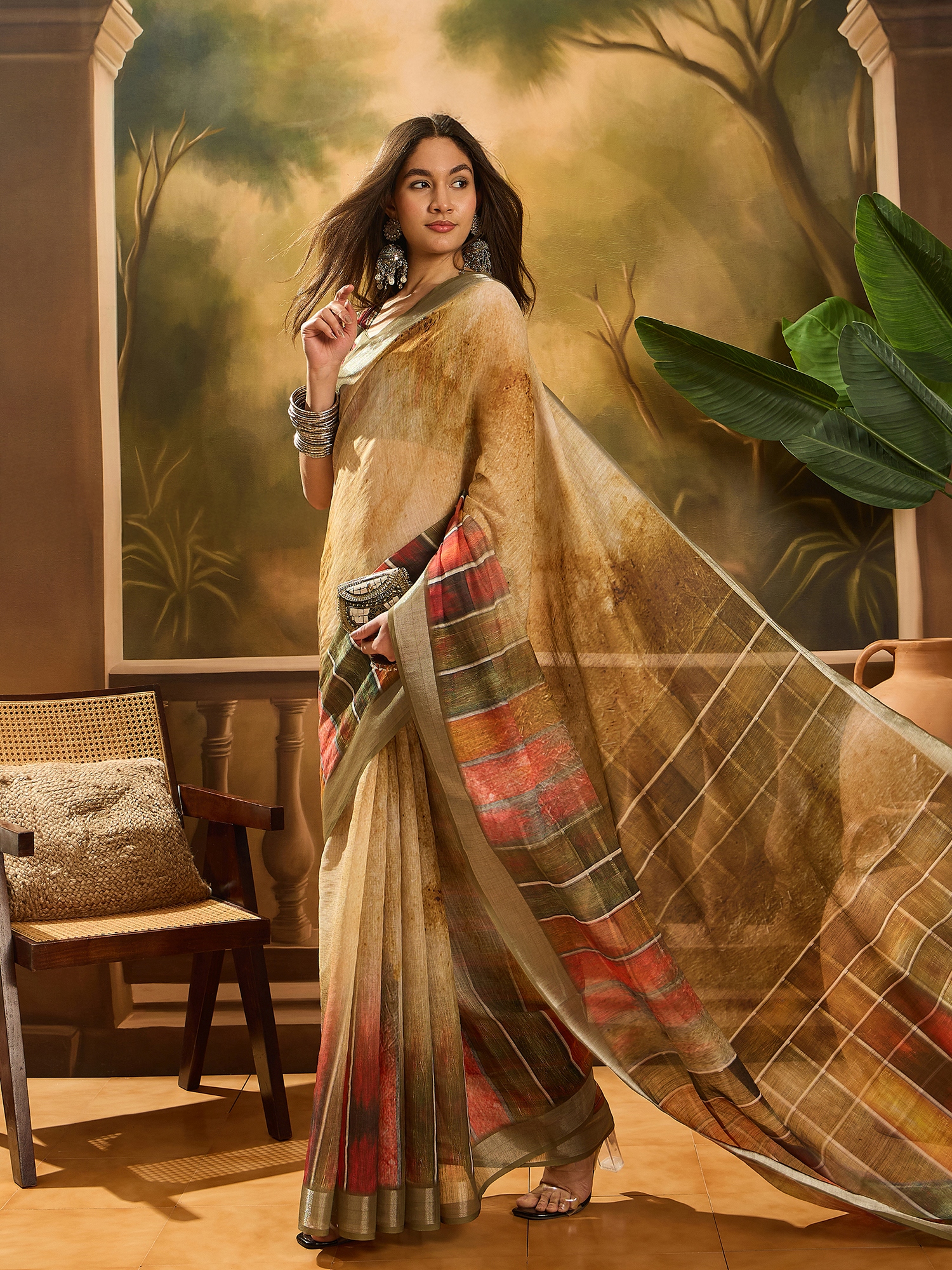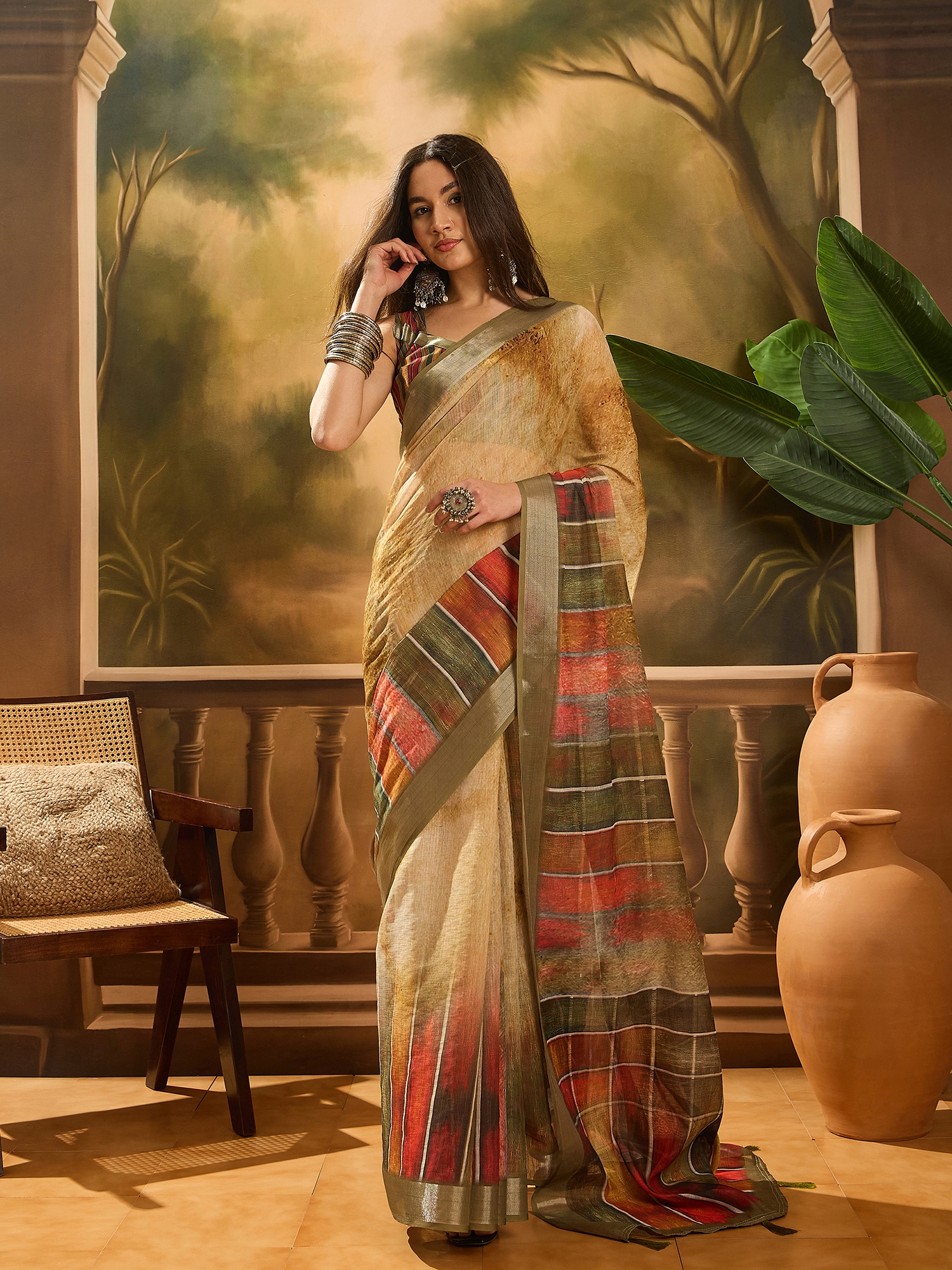 • Saree Fabric-Linen Cotton Blend ,Blouse Fabric-Linen Cotton Blend