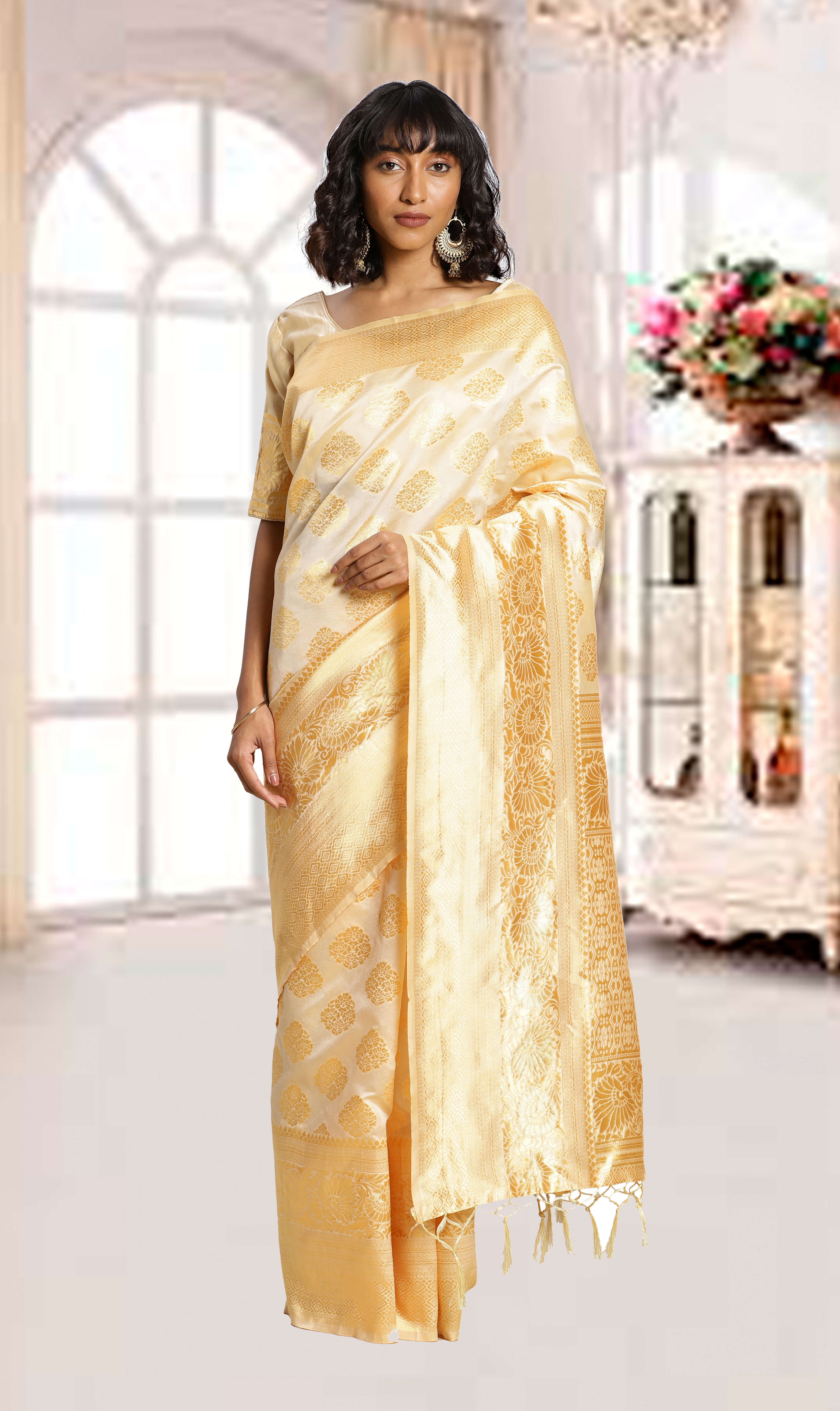 AASTHA FASHION Fashion Dream Womens CREAM Banarasi Silk Saree | Soft & Elegant Traditional Wear