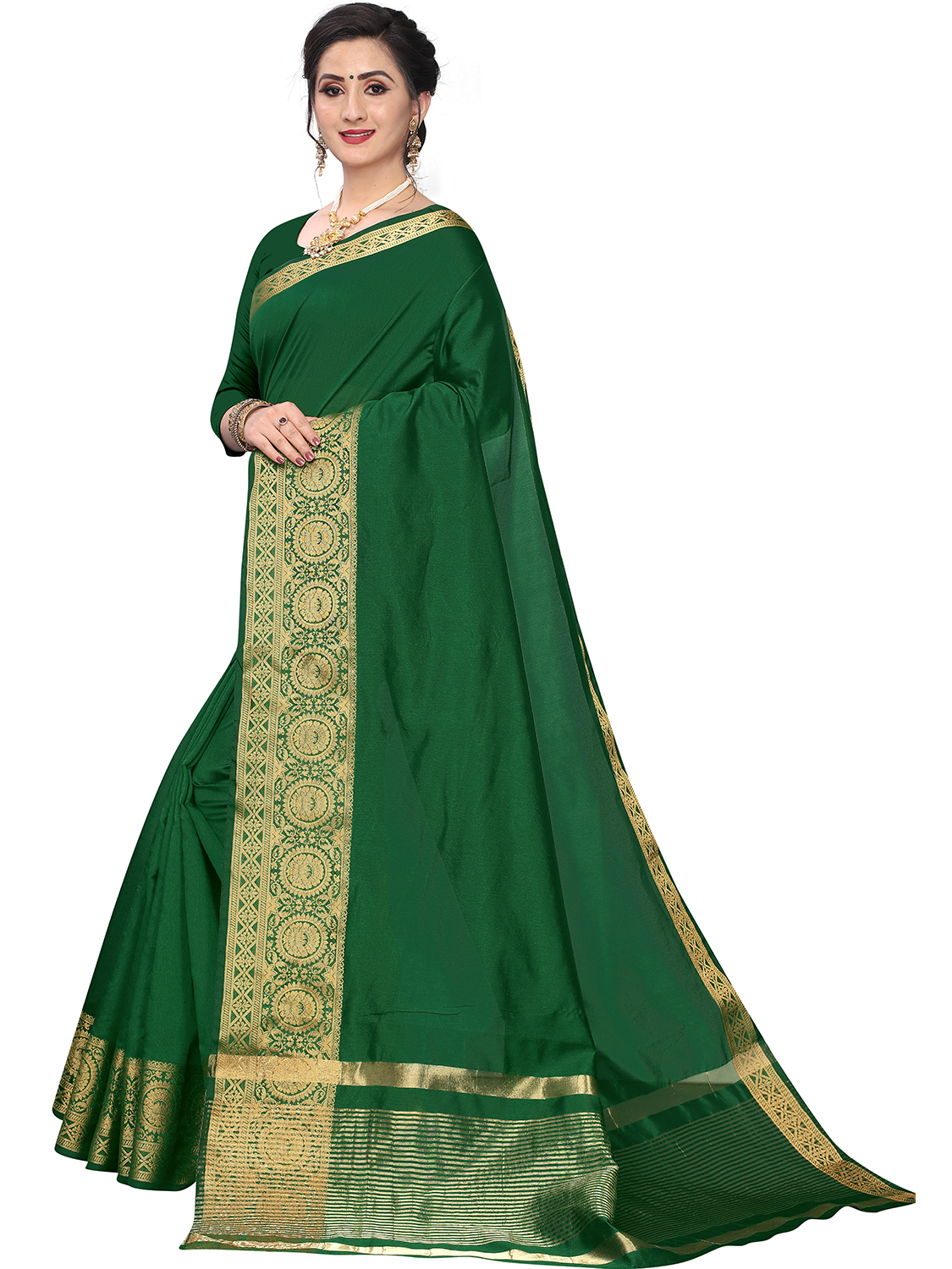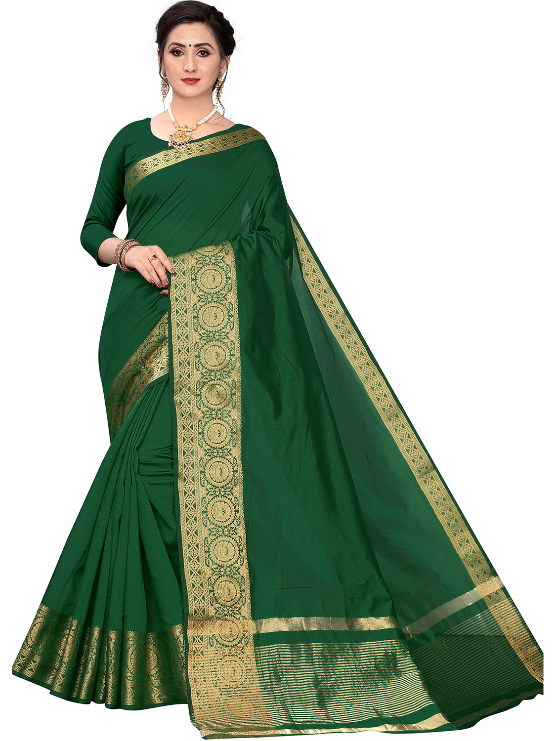 AASTHA FASHION Fashion Dream Womens Dark Green Cotton silk Saree | Soft & Elegant Traditional Wear