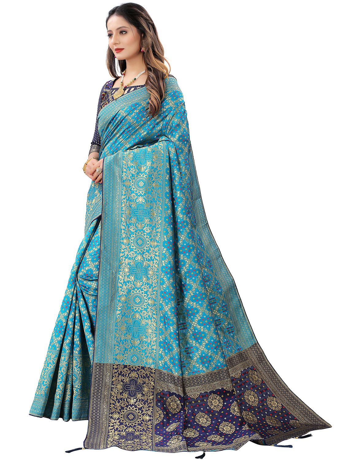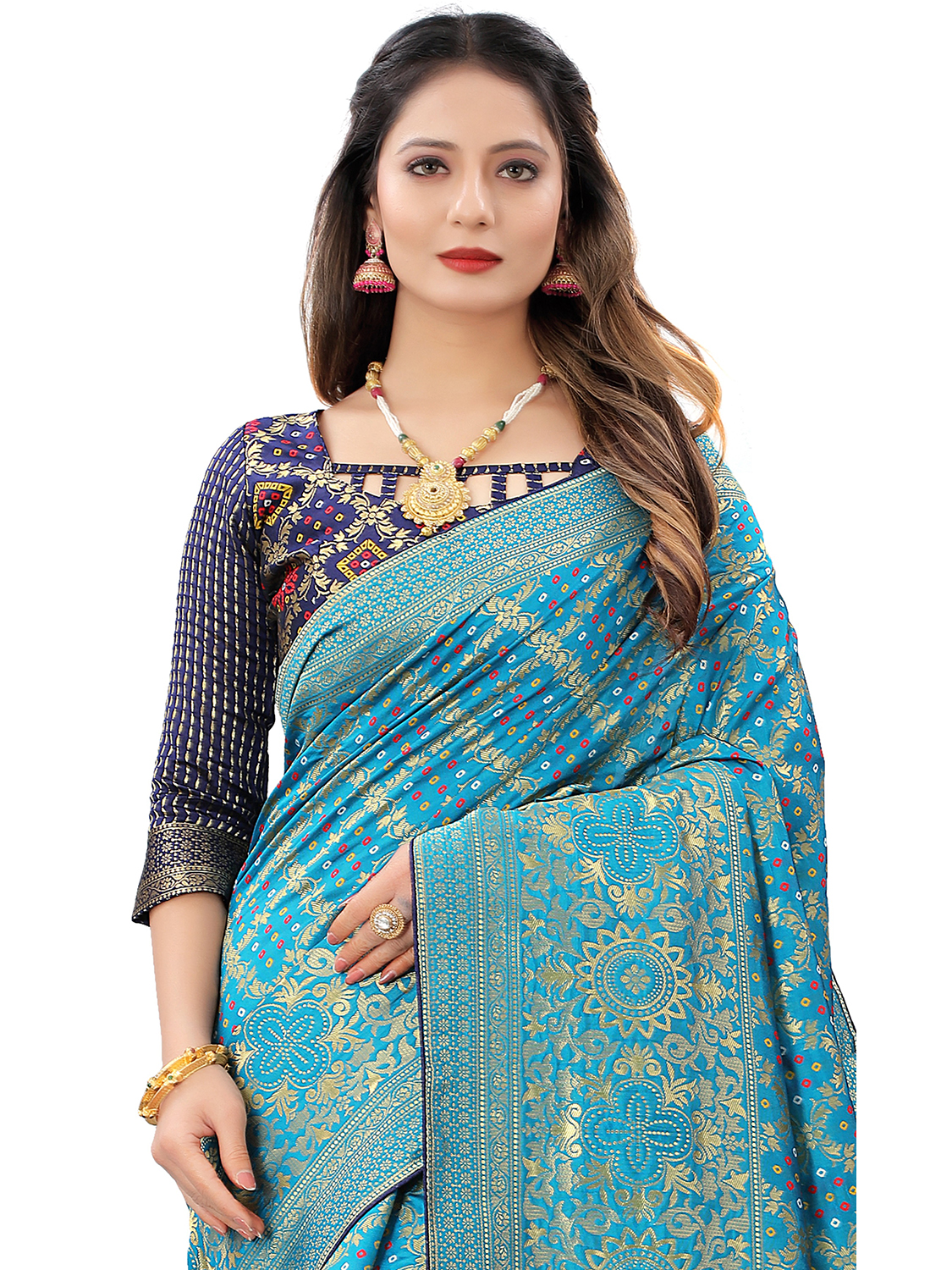 AASTHA FASHION Fashion Dream Womens Firozi Cotton Silk Blend Saree | Soft & Elegant Traditional Wear