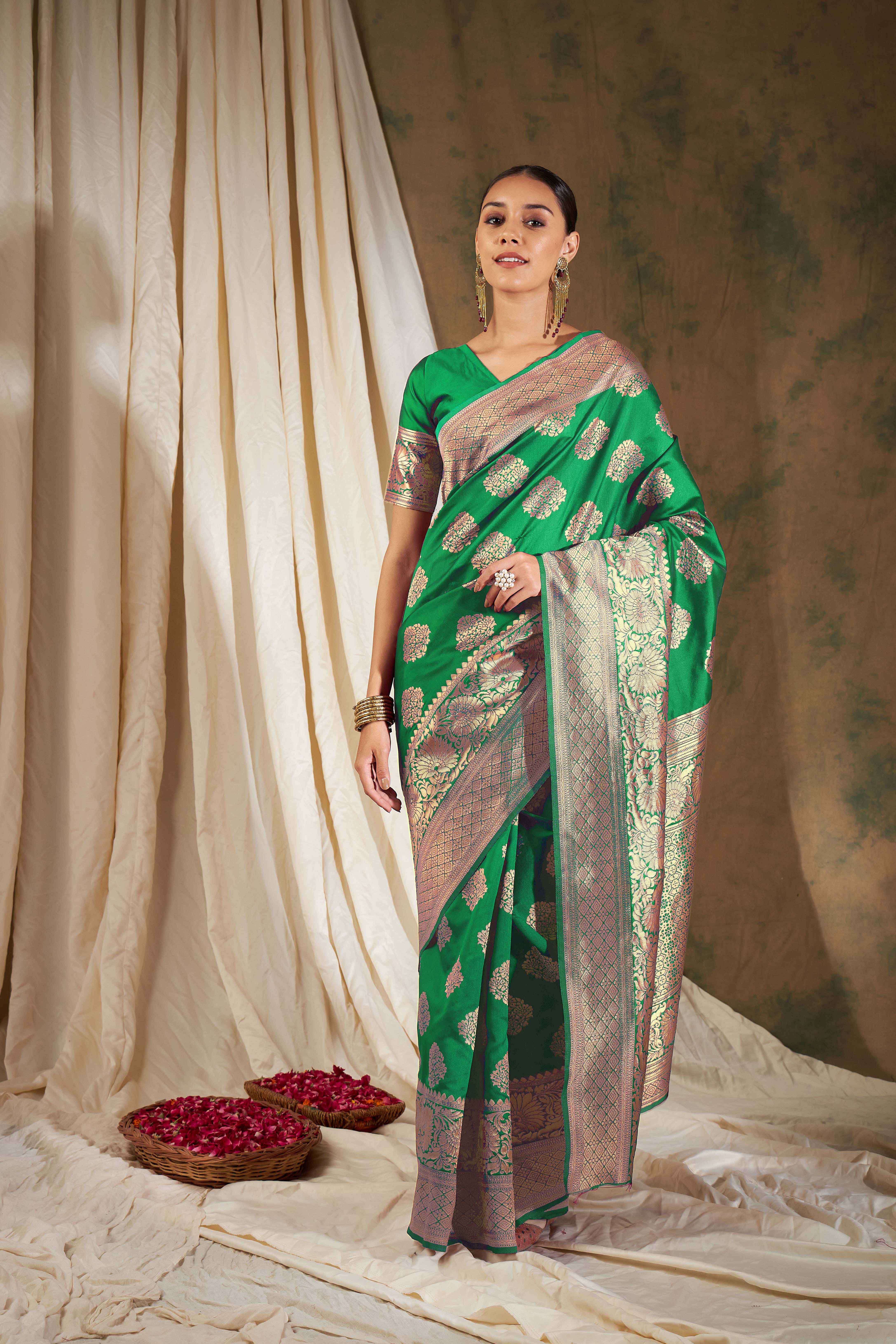AASTHA FASHION Fashion Dream Womens GREEN Banarasi Silk Saree | Soft & Elegant Traditional Wear