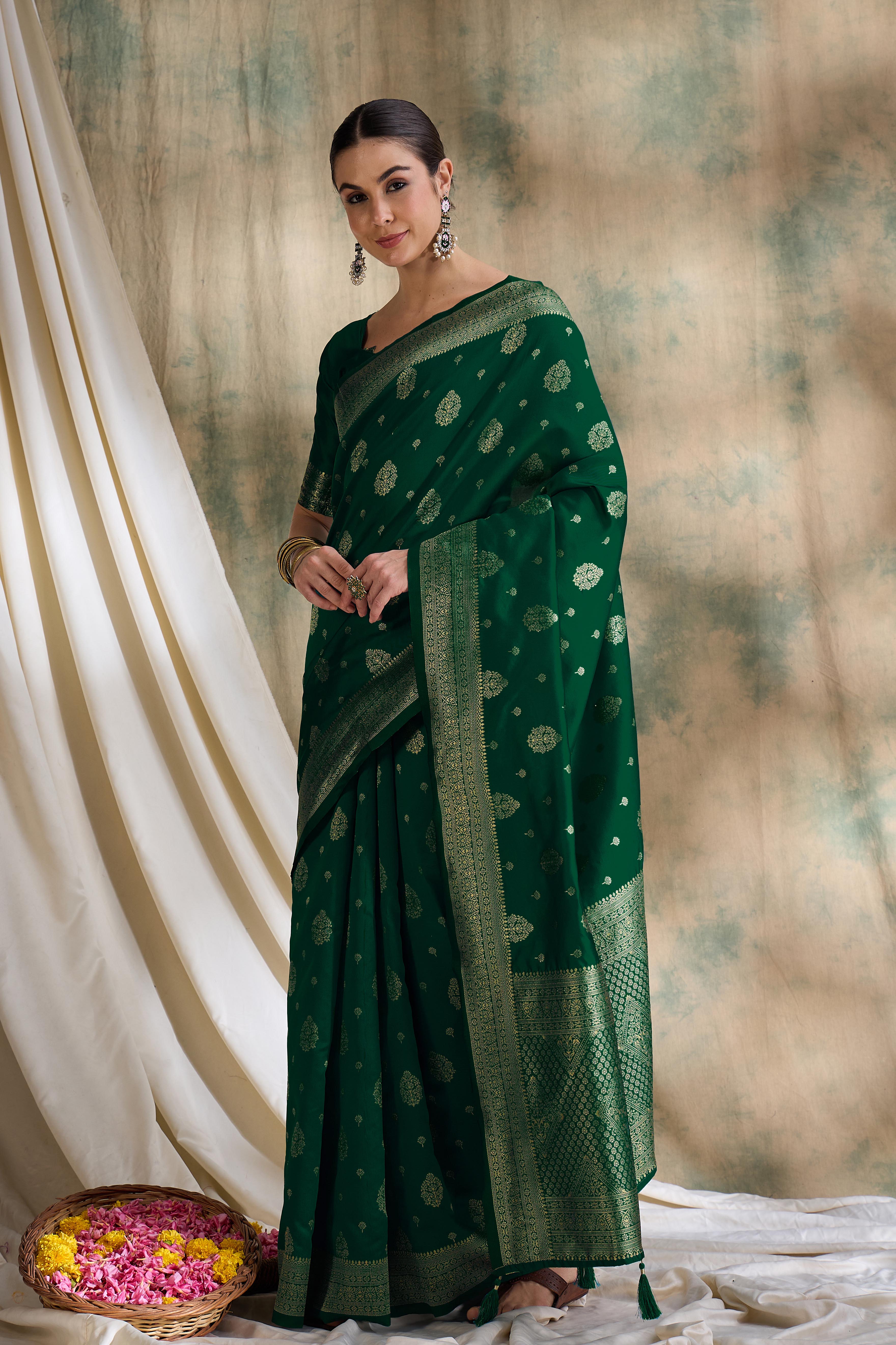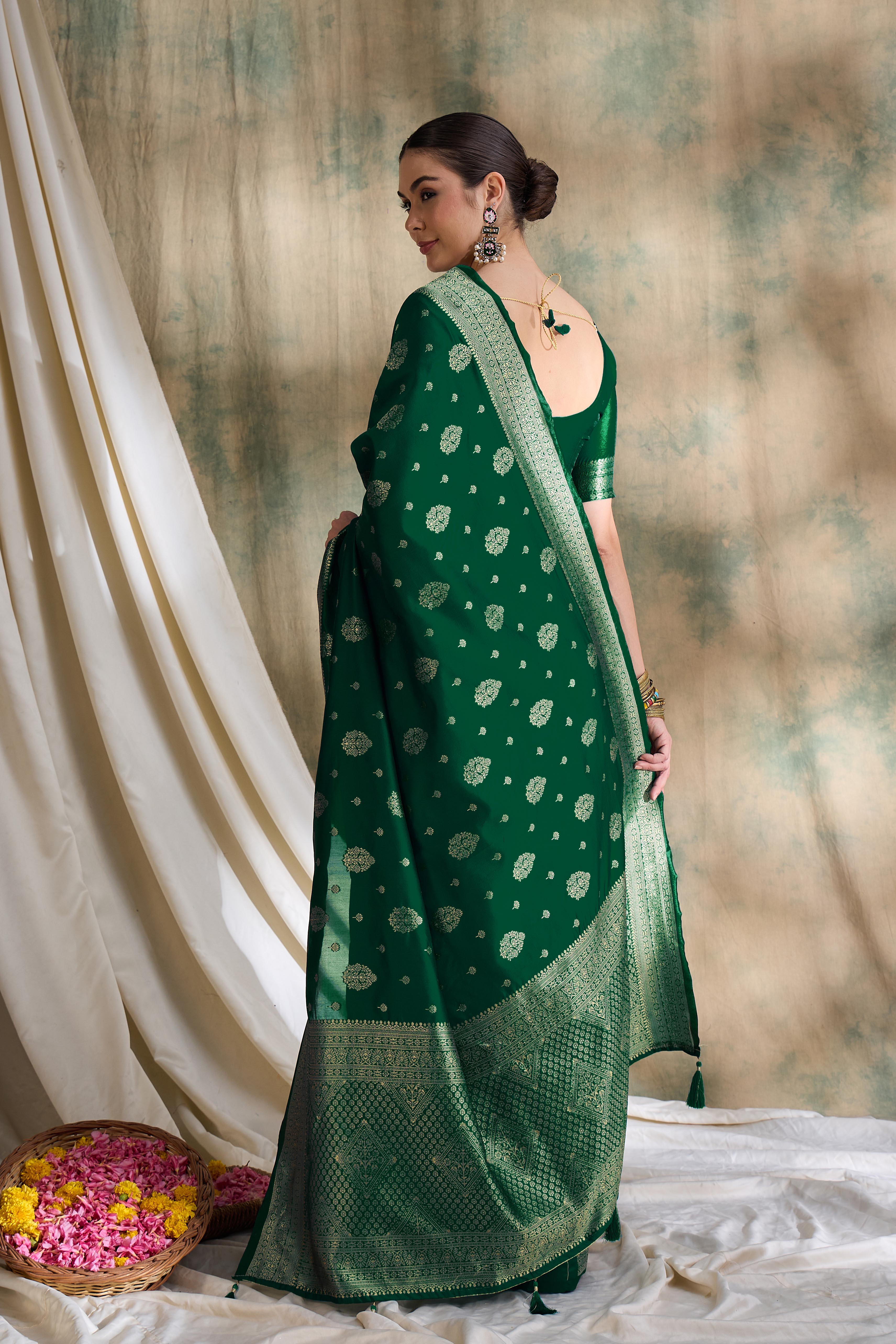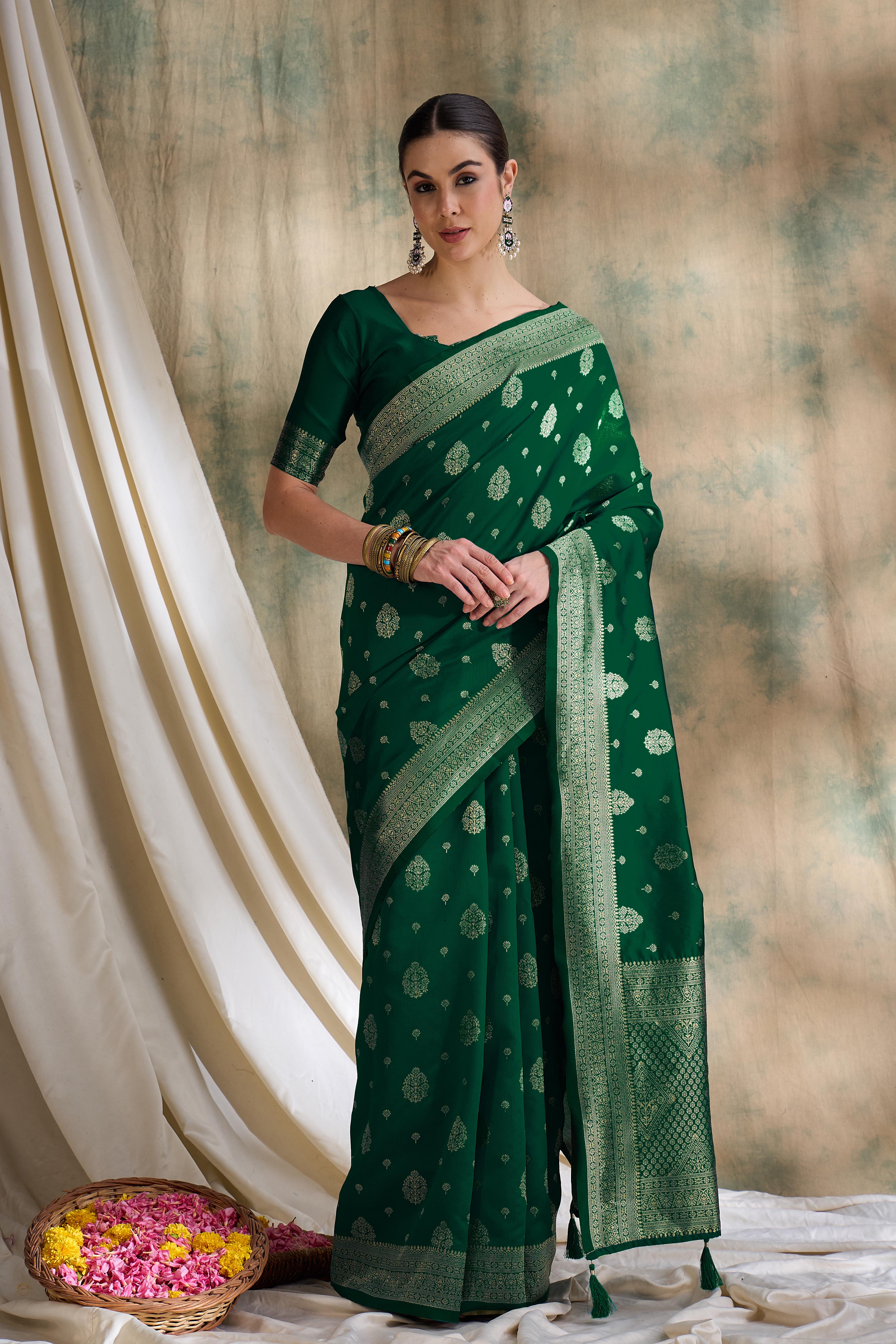 AASTHA FASHION Fashion Dream Womens Green Banarasi Silk Saree | Soft & Elegant Traditional Wear