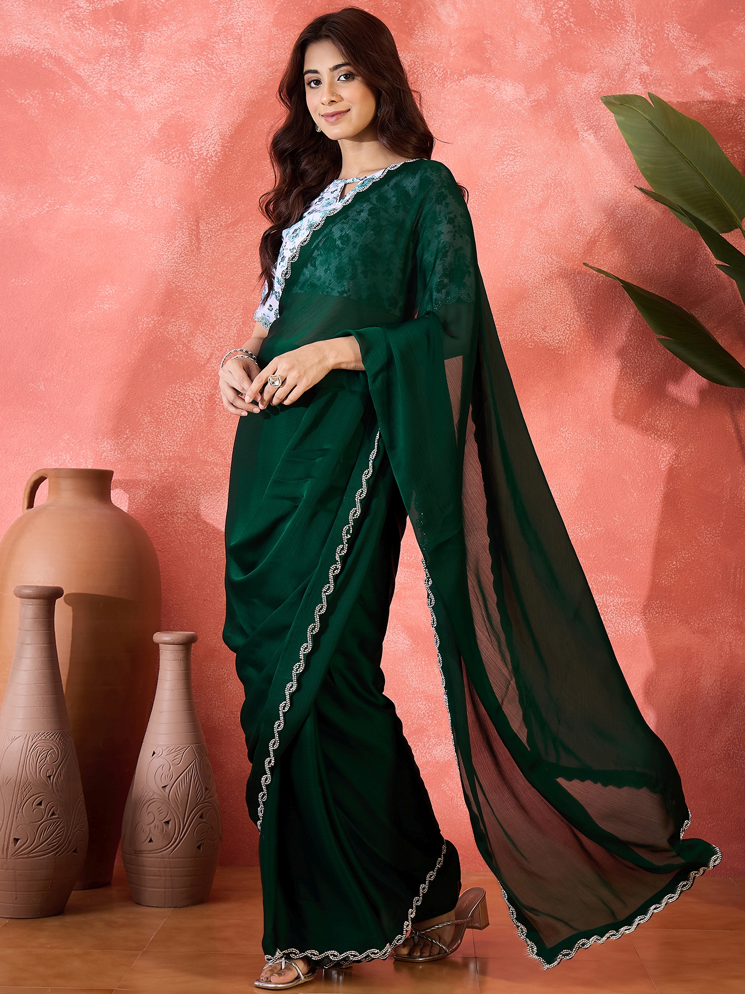 • Saree Fabric-Heavy Satin Chiffon ,Blouse Fabric-Turkey Silk