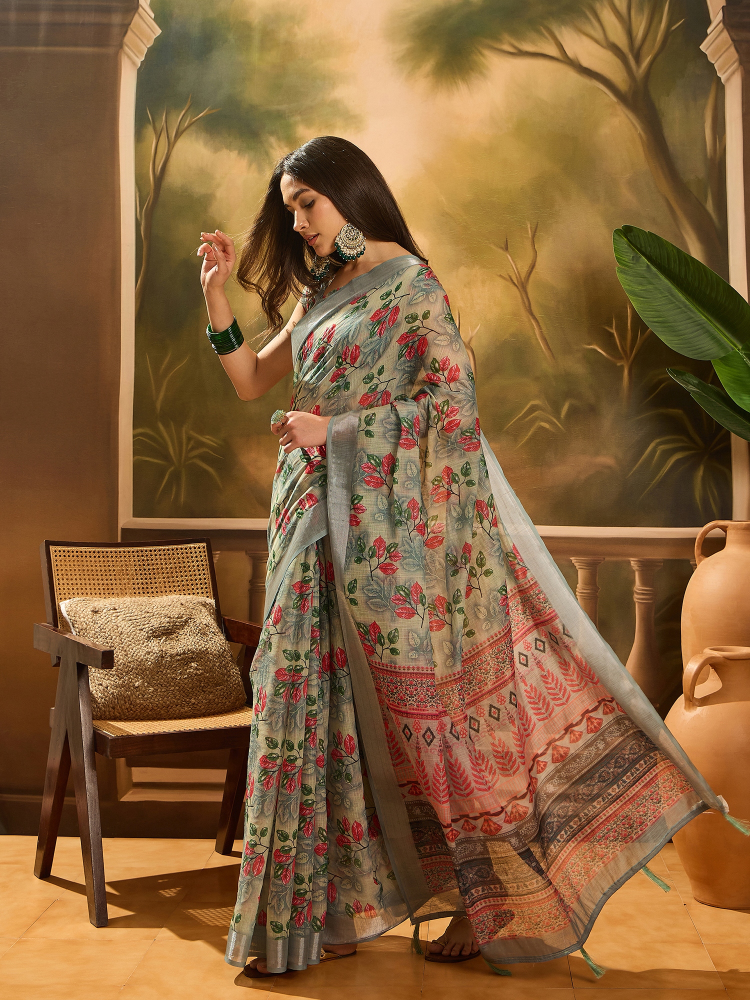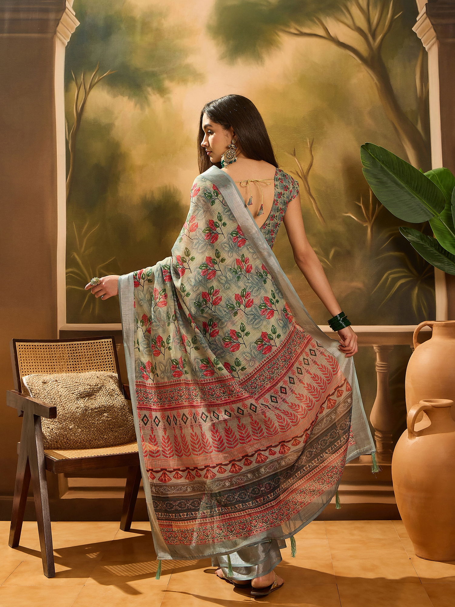 • Saree Fabric-Linen Cotton Blend ,Blouse Fabric-Linen Cotton Blend