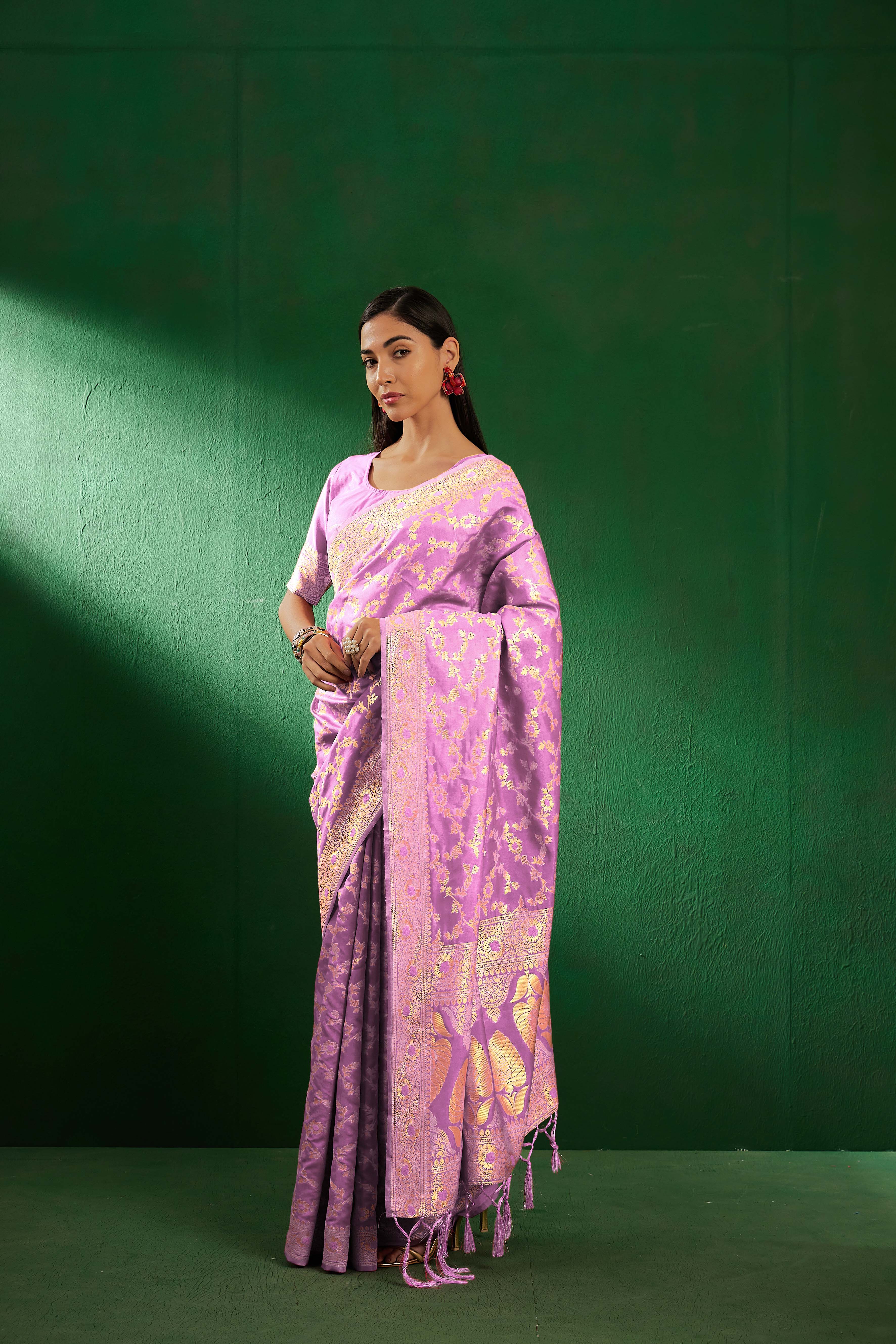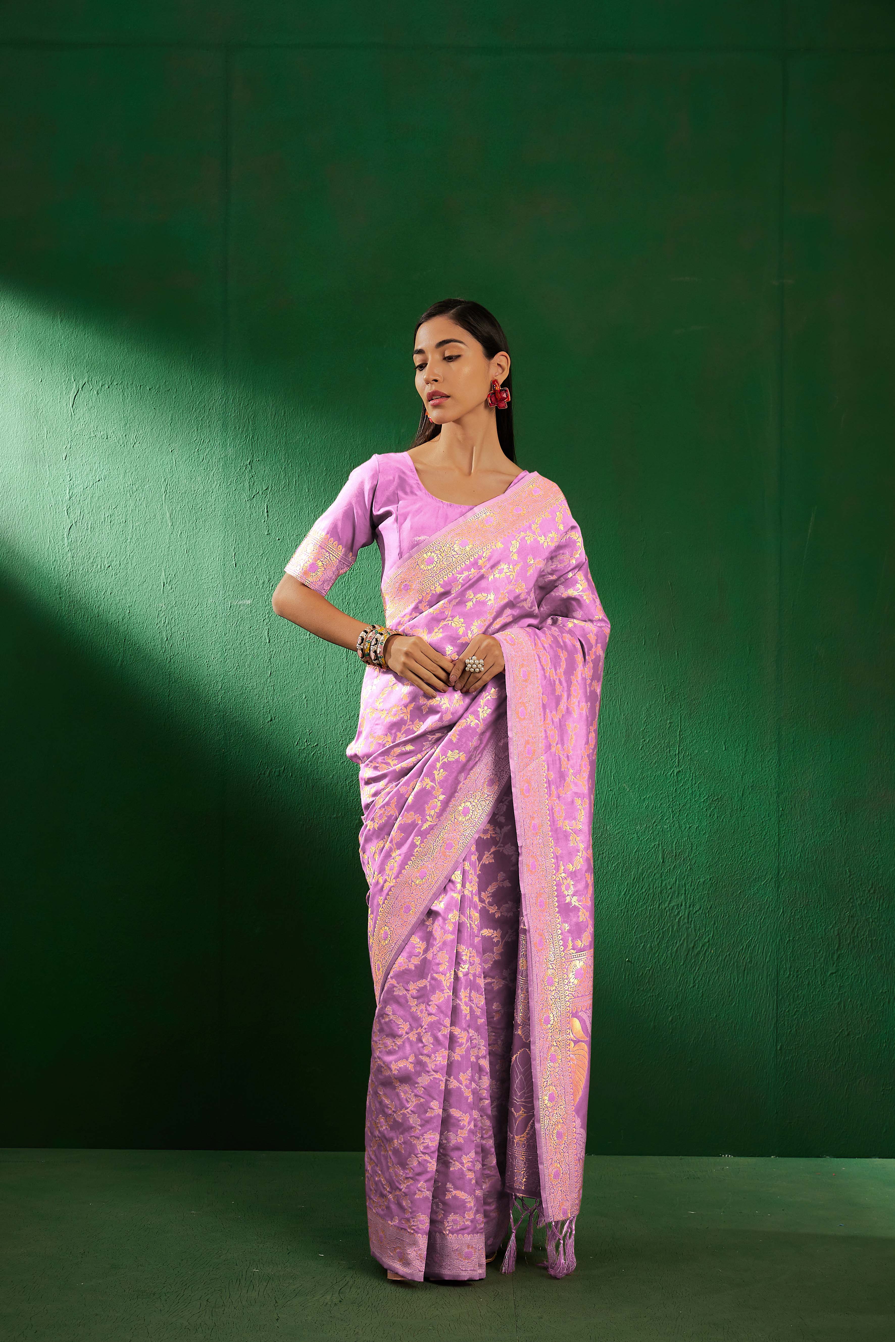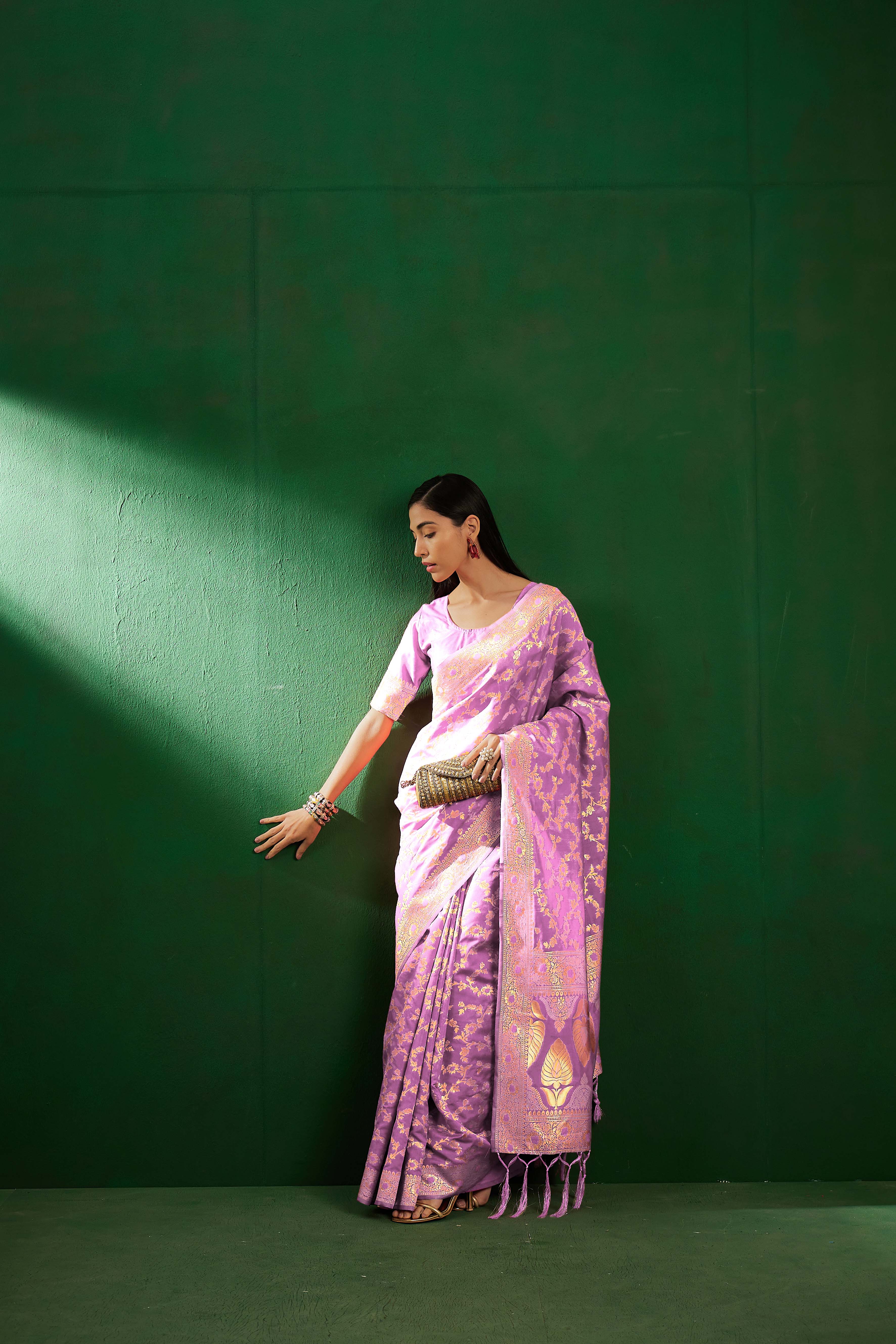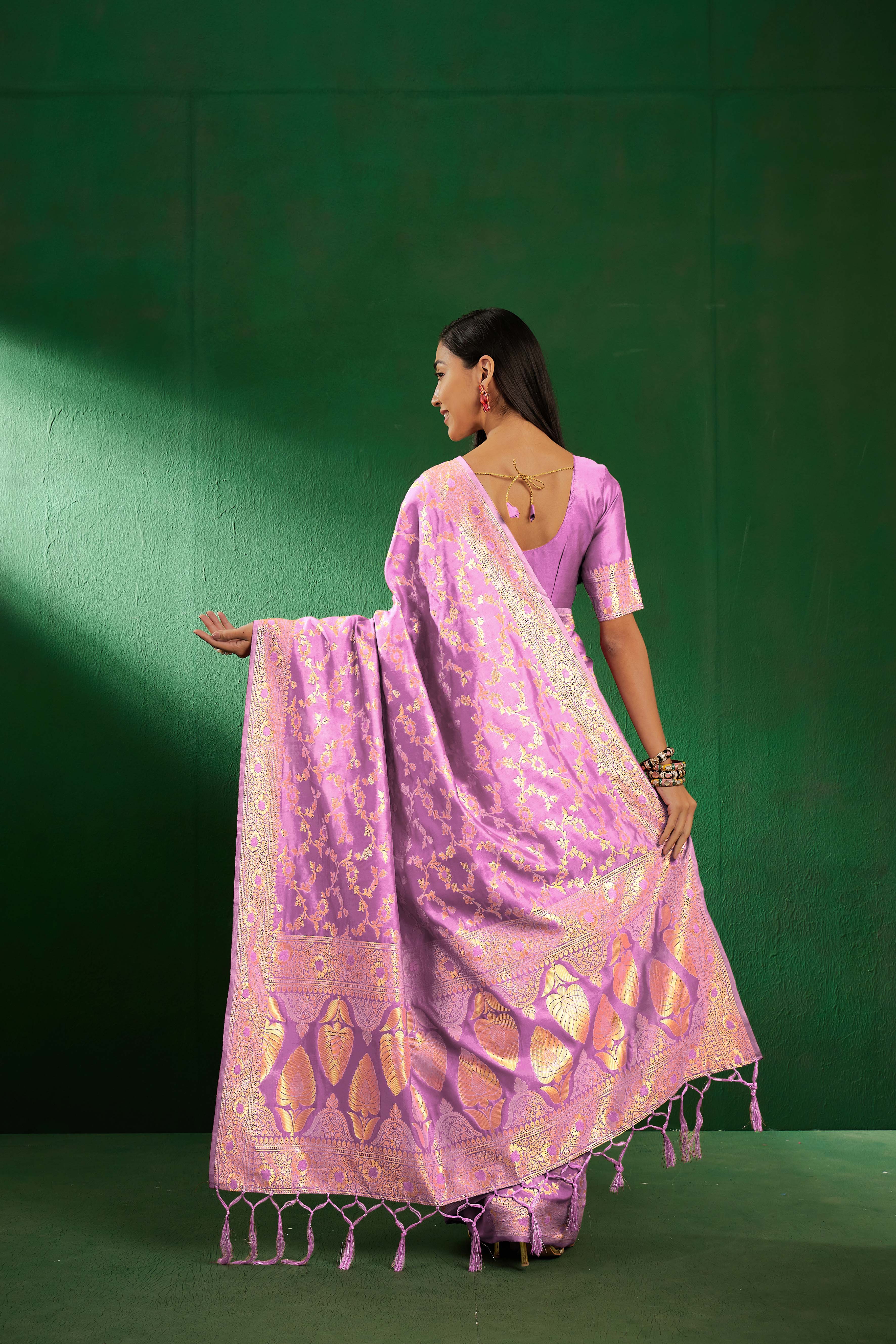 AASTHA FASHION Fashion Dream Womens Lavender Banarasi Silk Saree | Soft & Elegant Traditional Wear