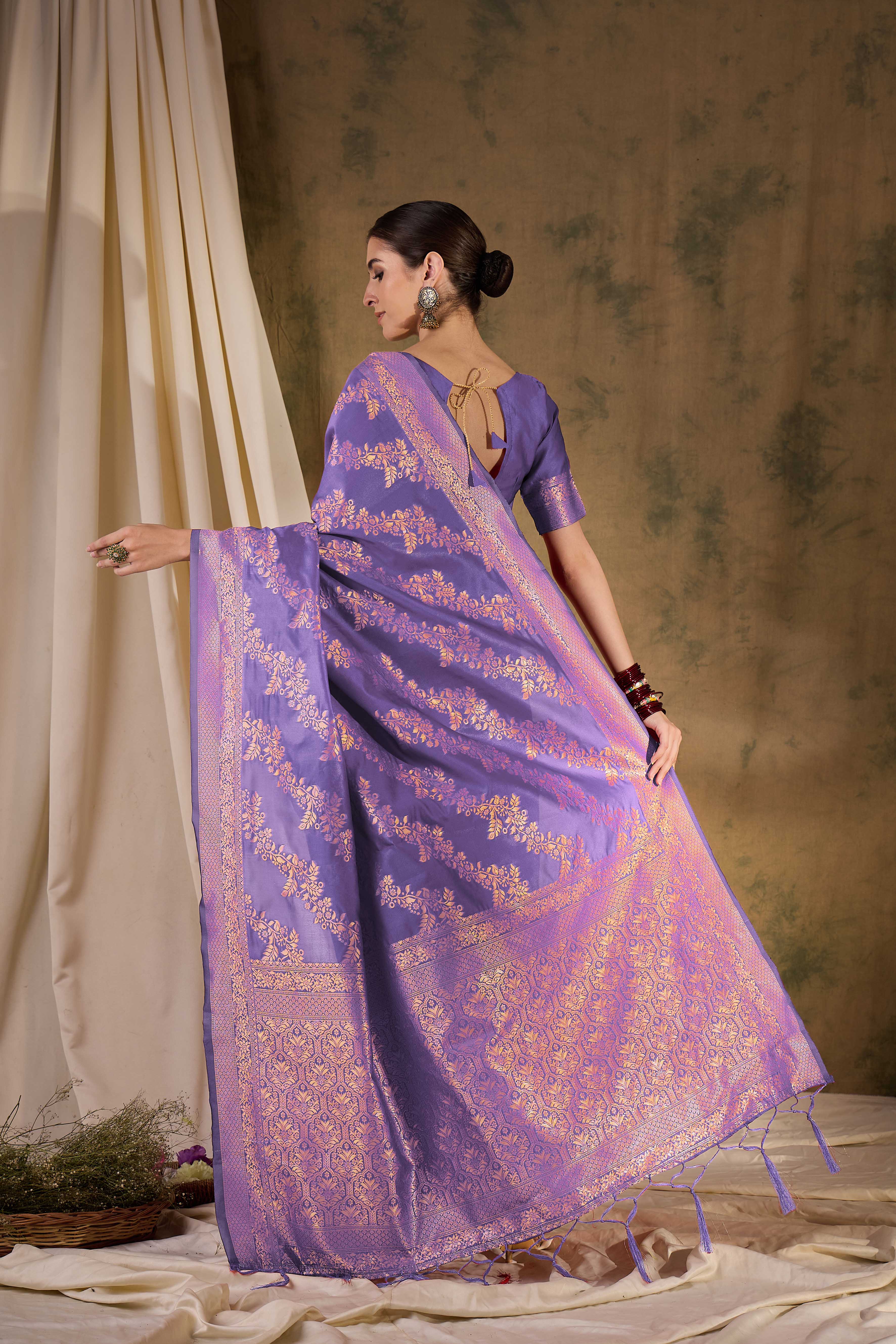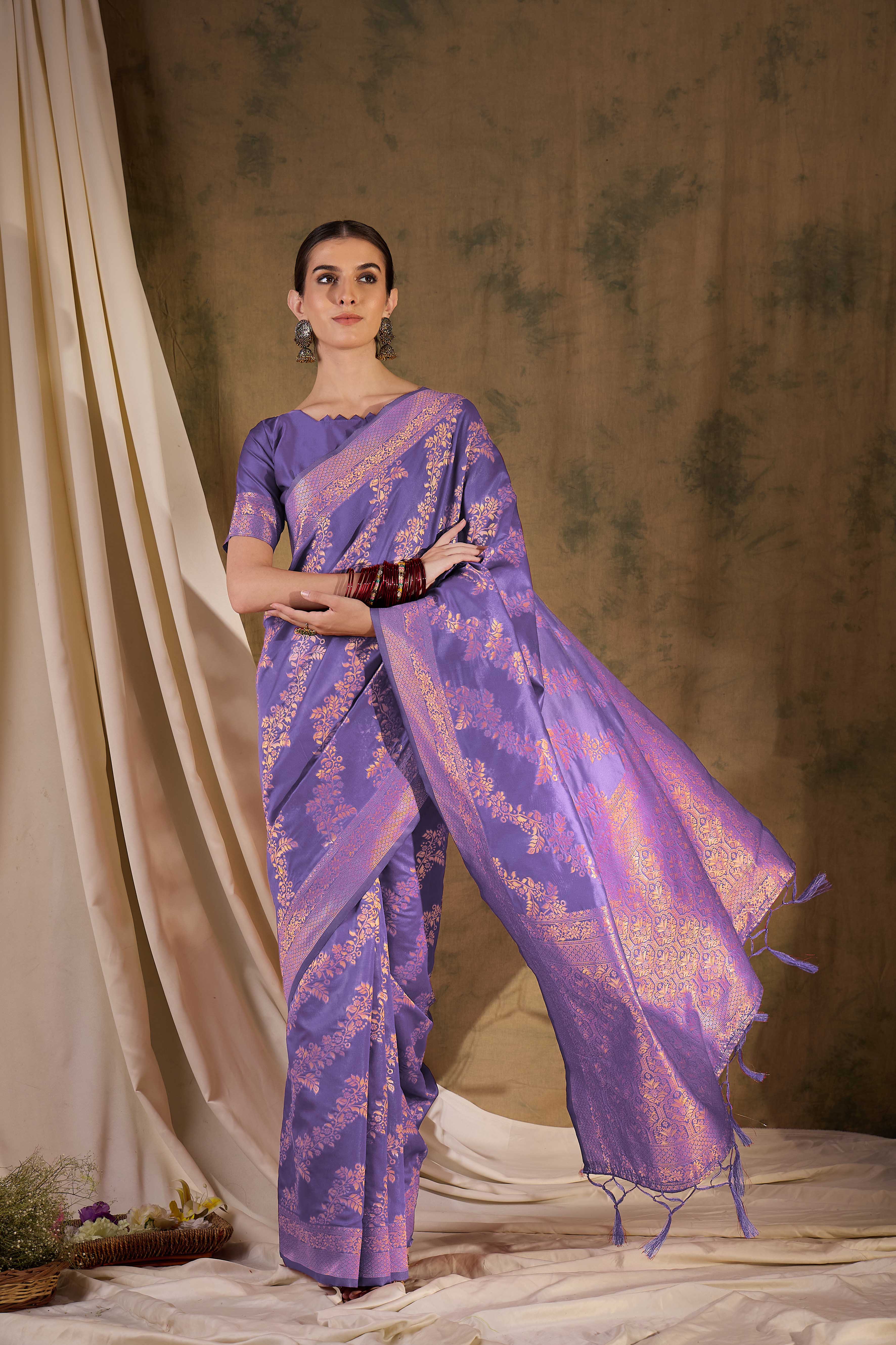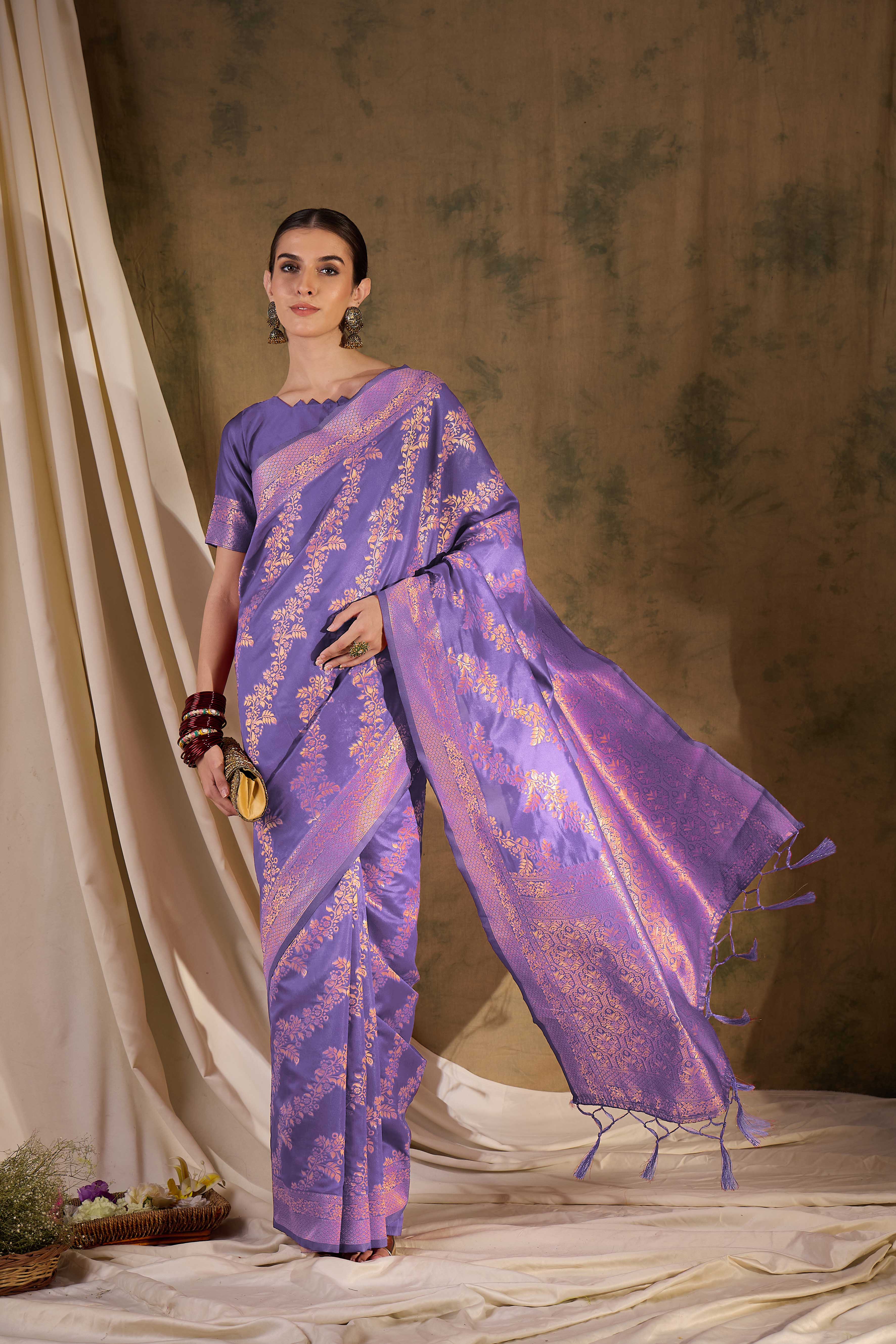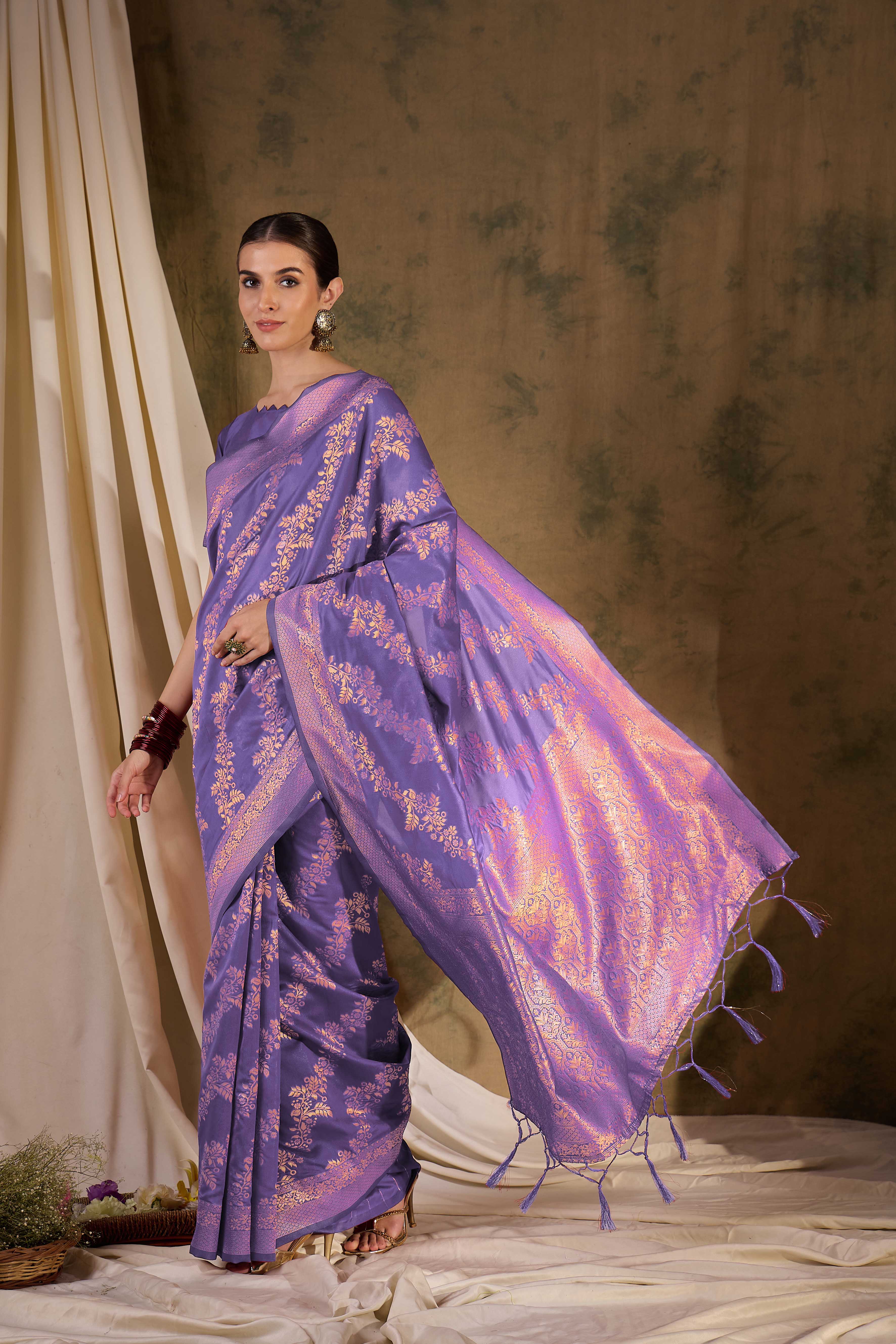 AASTHA FASHION Fashion Dream Womens Lavender Banarasi Silk Saree | Soft & Elegant Traditional Wear