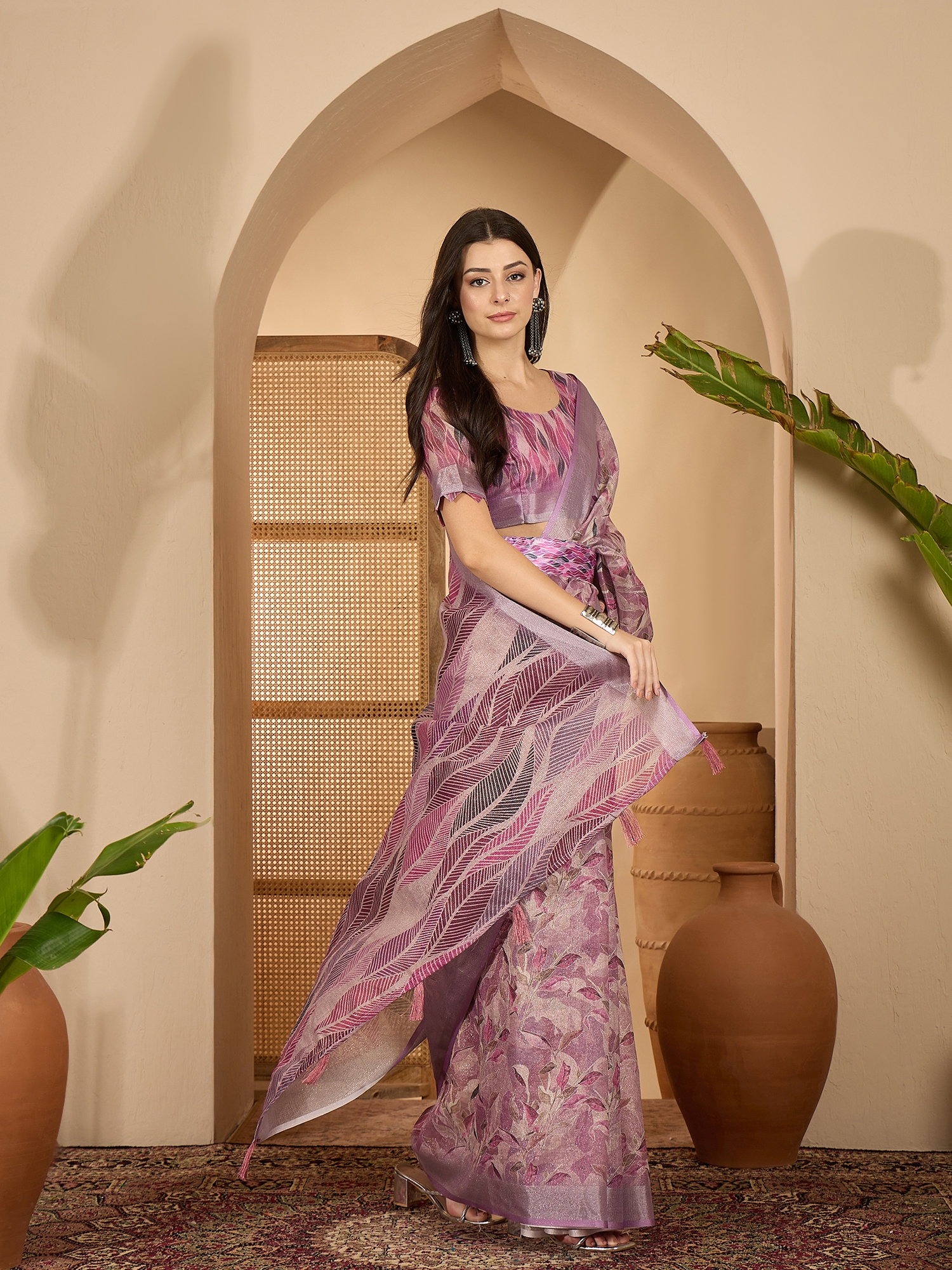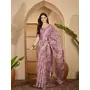 AASTHA FASHION Fashion Dream Womens Lavender Linen Zari Gold Saree | Soft & Elegant Traditional Wear
