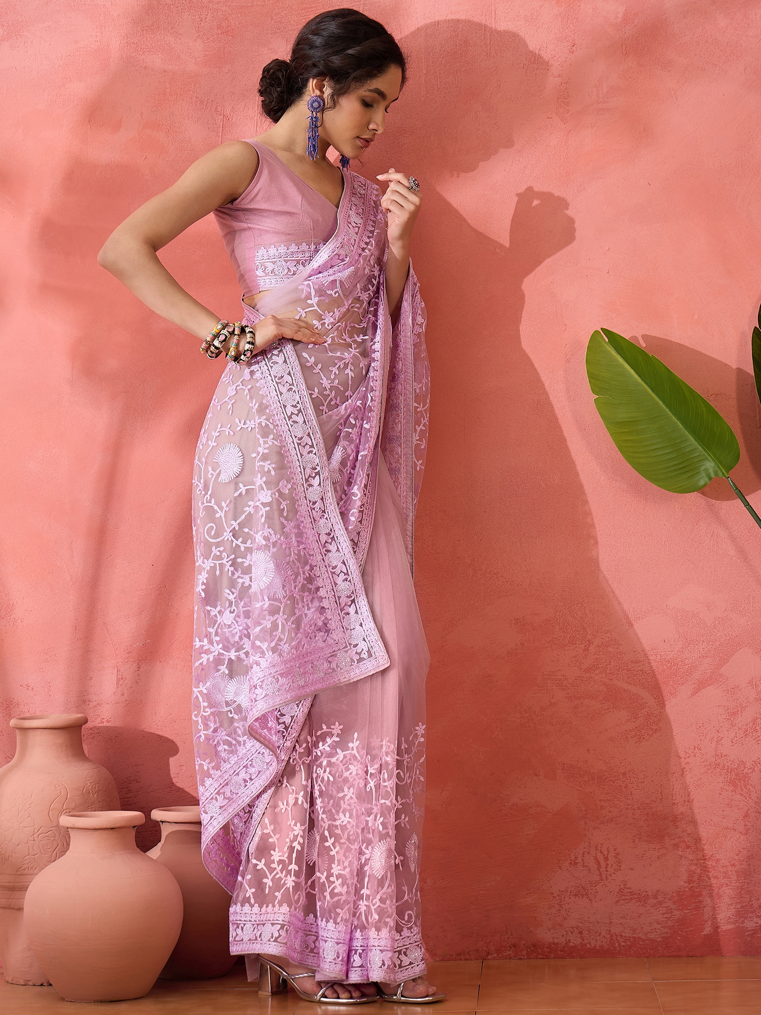 AASTHA FASHION Fashion Dream Womens Lavender Net Saree | Soft & Elegant Traditional Wear