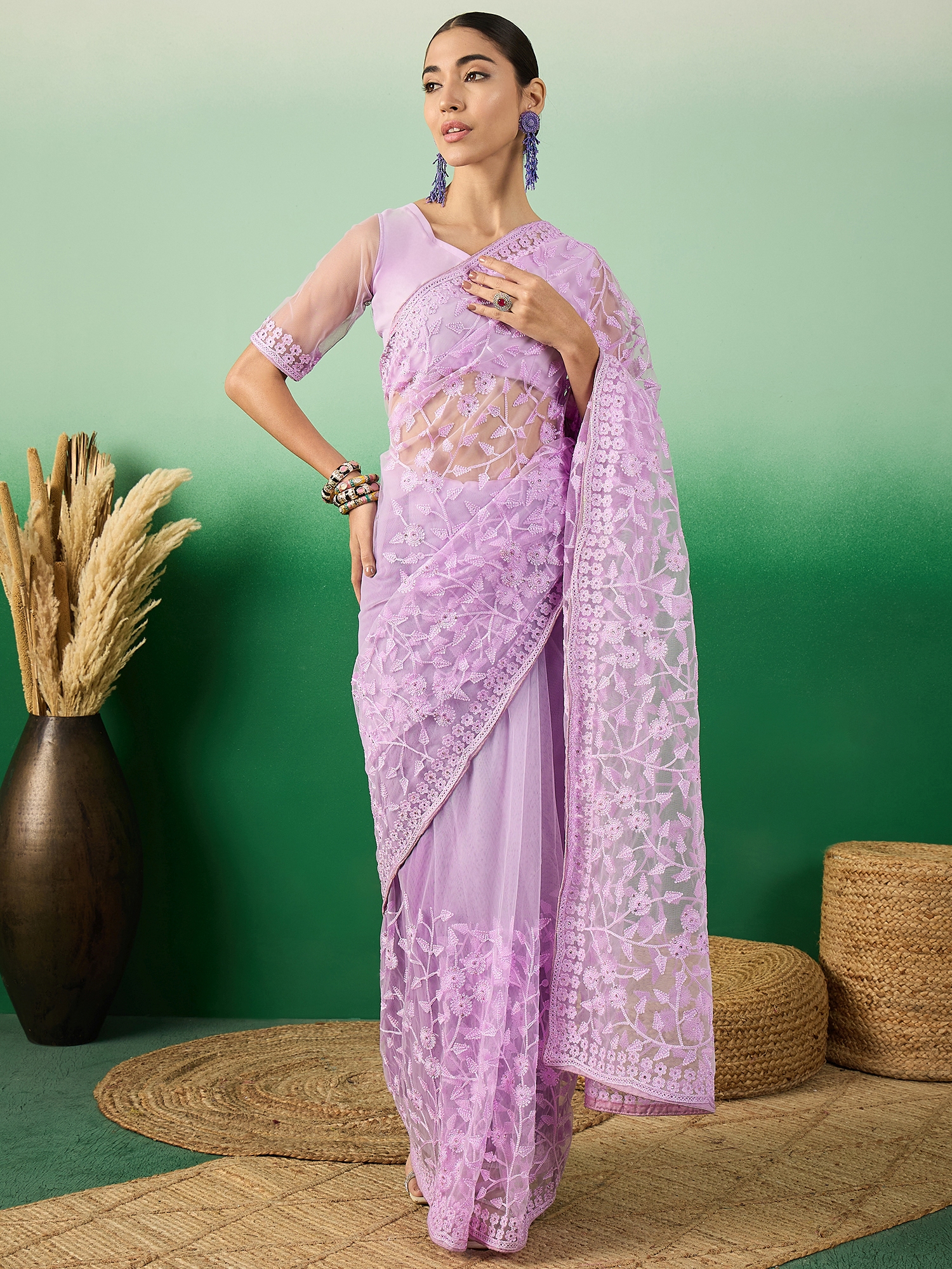 AASTHA FASHION Fashion Dream Womens Lavender Net Saree | Soft & Elegant Traditional Wear