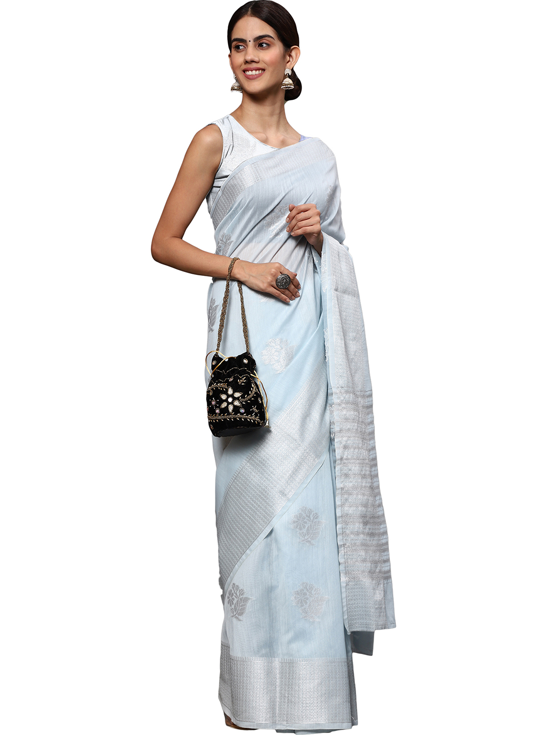 AASTHA FASHION Fashion Dream Womens Light Blue Tissue Silk Saree | Soft & Elegant Traditional Wear