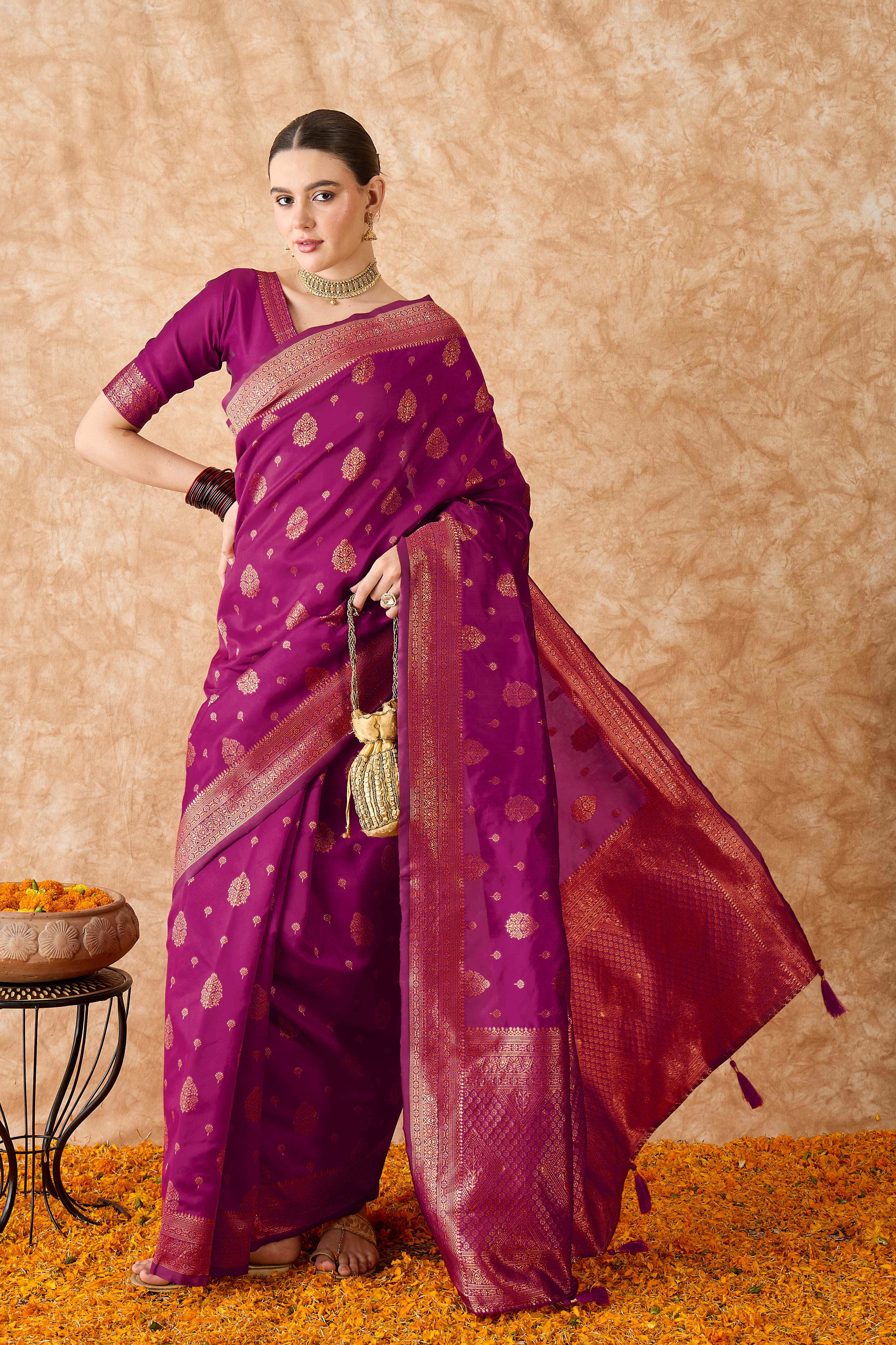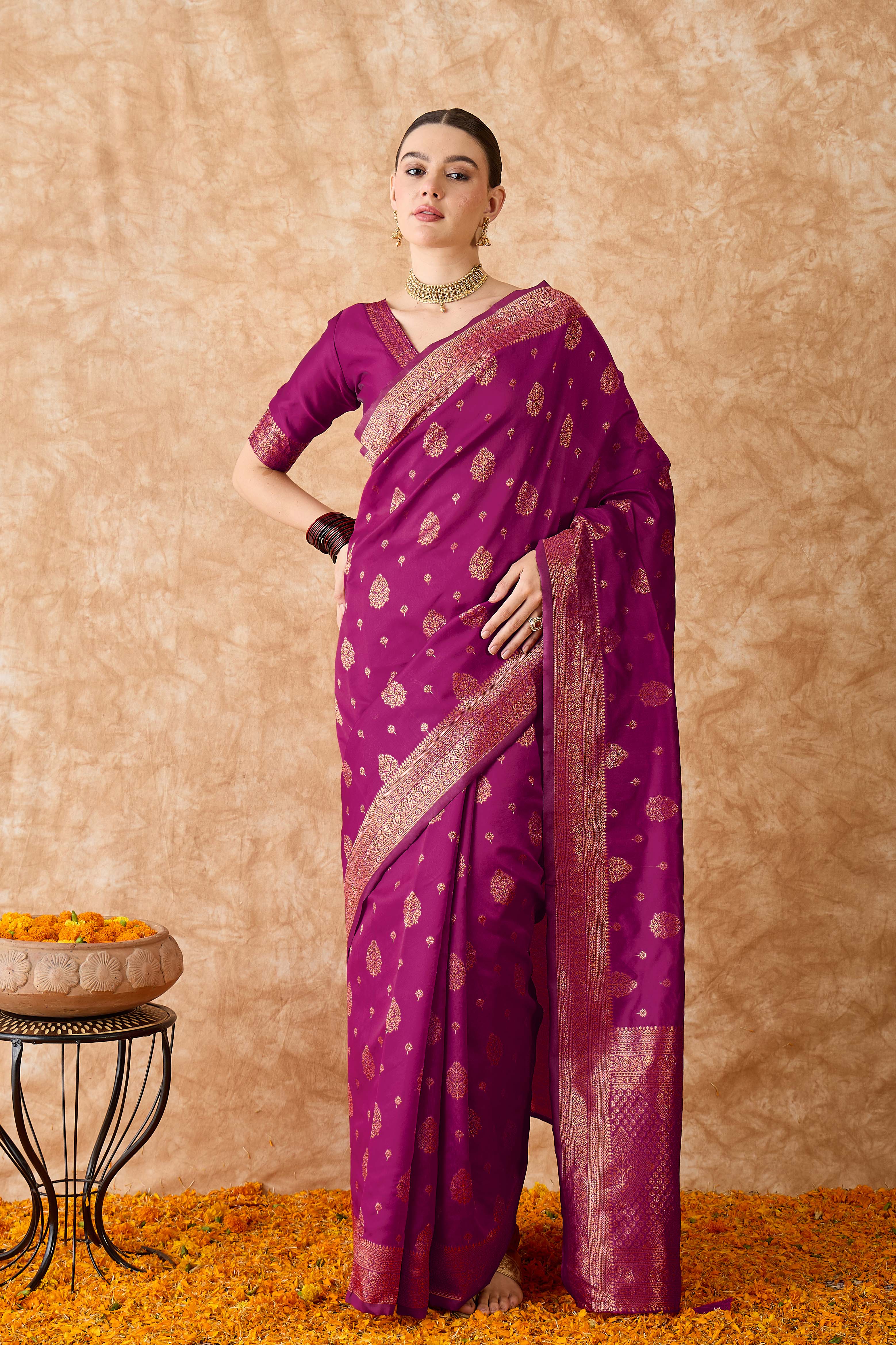 • Saree Fabric-Banarasi Silk ,Blouse Fabric-Banarasi Silk